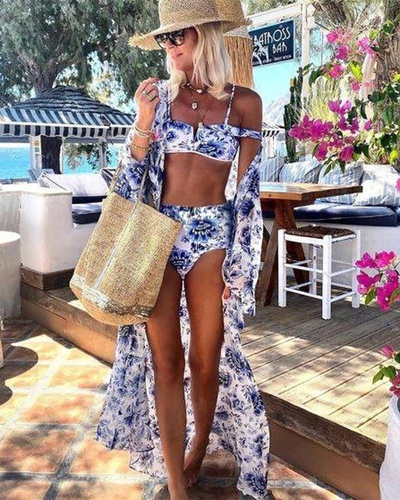 Three-Piece Set Printed Swimsuit and Cover-Up