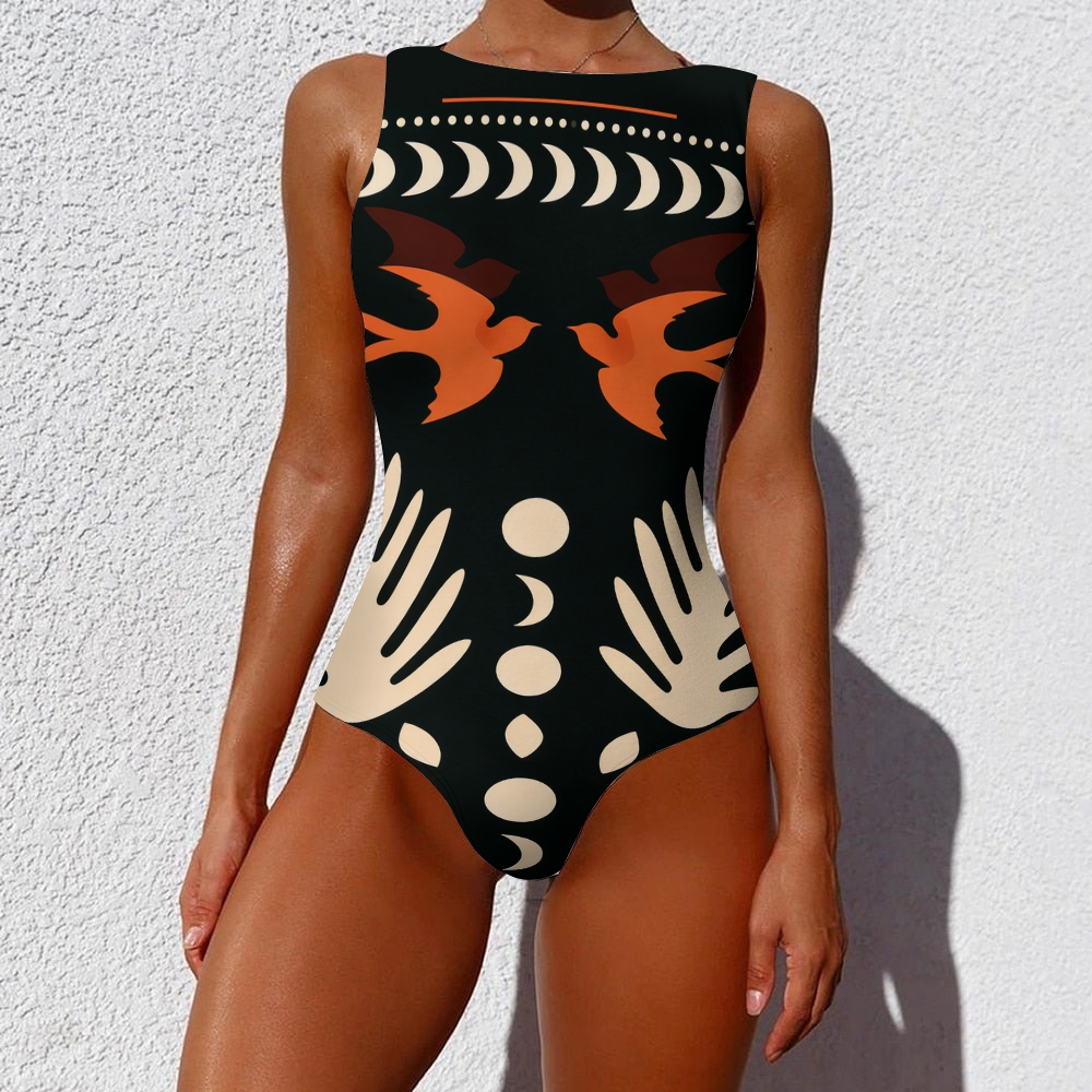 Geometric Swallow Print One-Piece Swimsuit