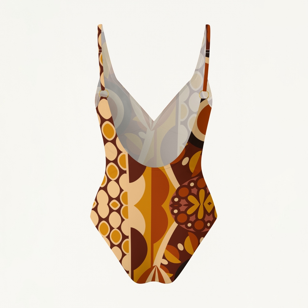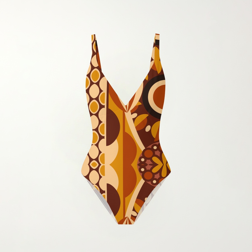 Retro Geometric Print Plunging V-Back One-Piece Swimsuit
