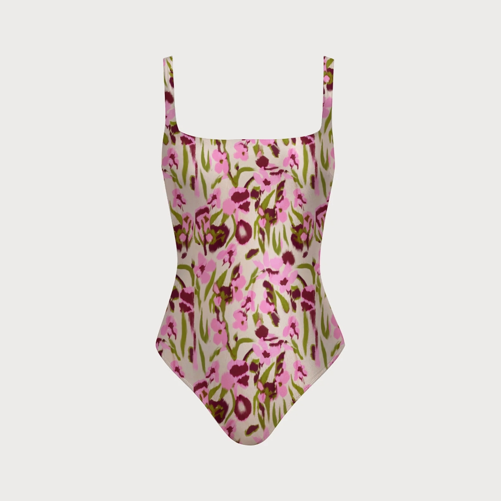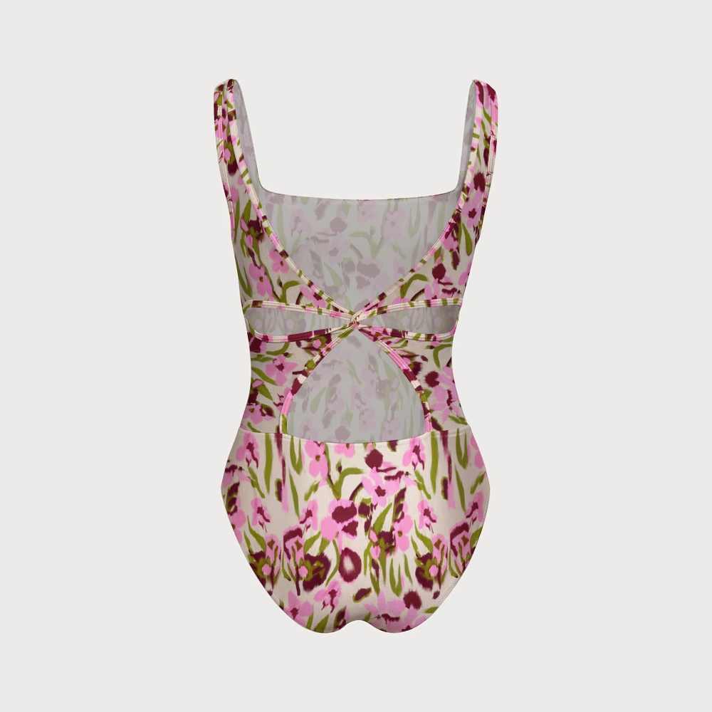 Women's Brushstroke Floral Print One-piece Swimsuit With Back Mesh Knot