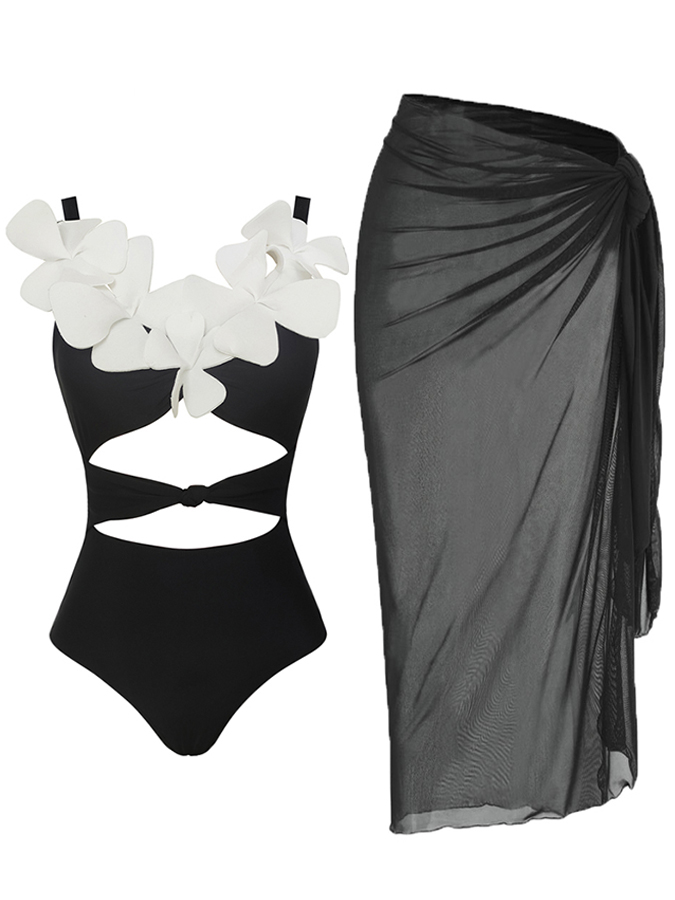 Fashion Colorblock Flower Design One Piece Swimsuit