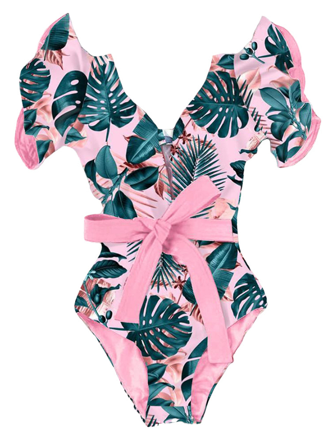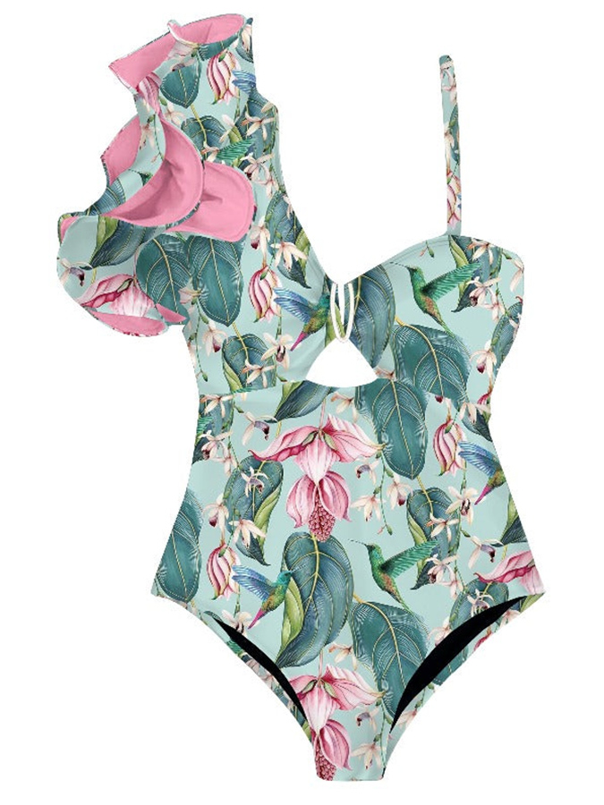 Fashion Print Ruffle One-Piece Swimsuit Set