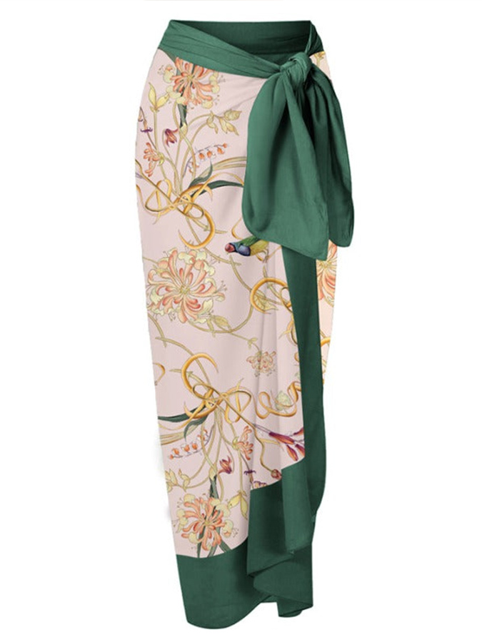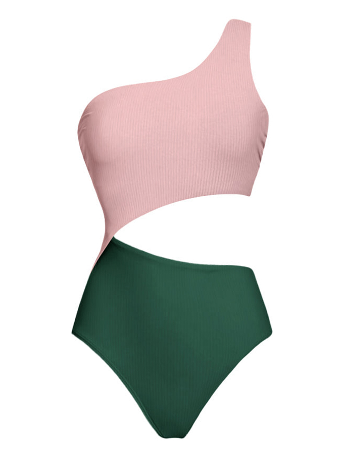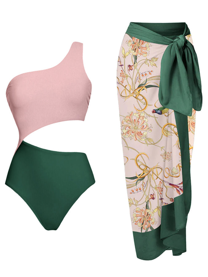 Ruffled Colorblock Print Swimsuit Set