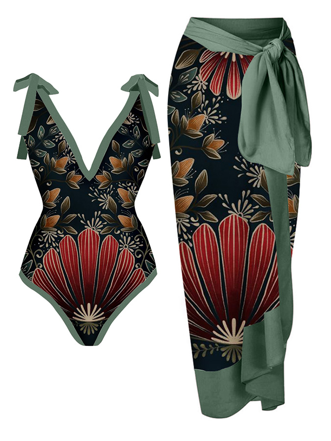 V-Neck Print Fashion One-Piece Swimsuit