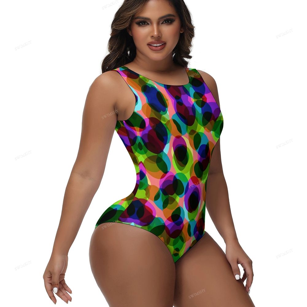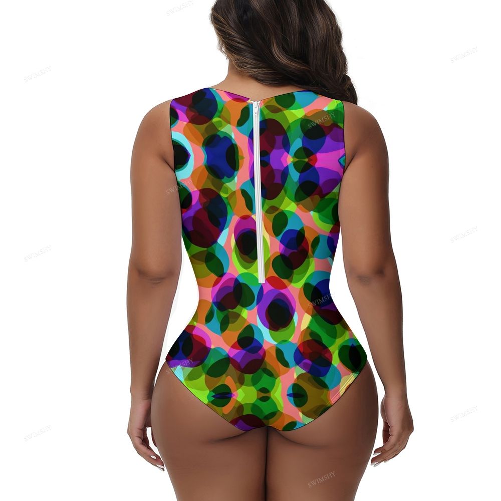 Colorful Overlapping Dots Print One-Piece Swimsuit