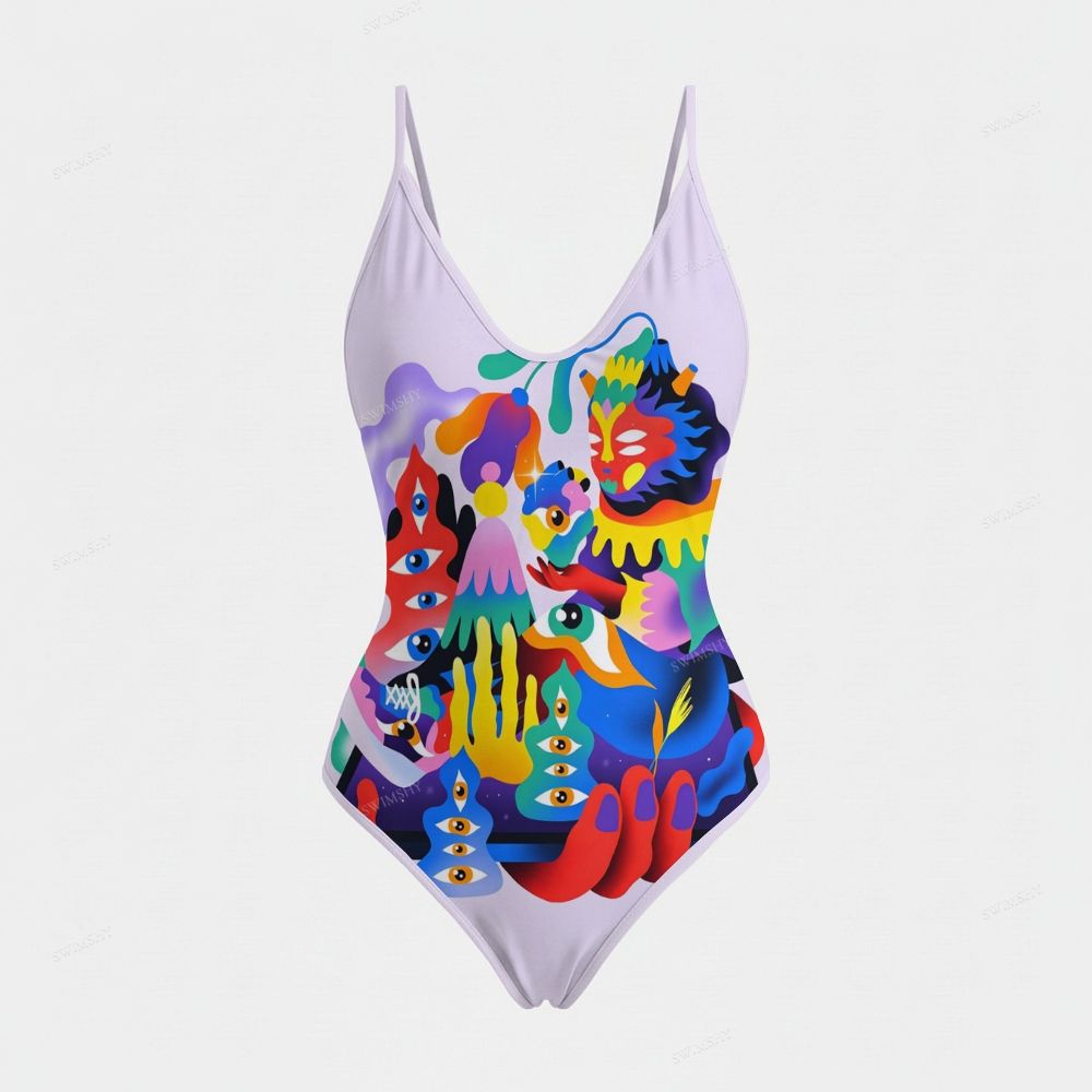Psychedelic Abstract Print Plunging V-Neck One-Piece Swimsuit