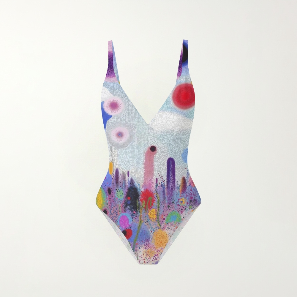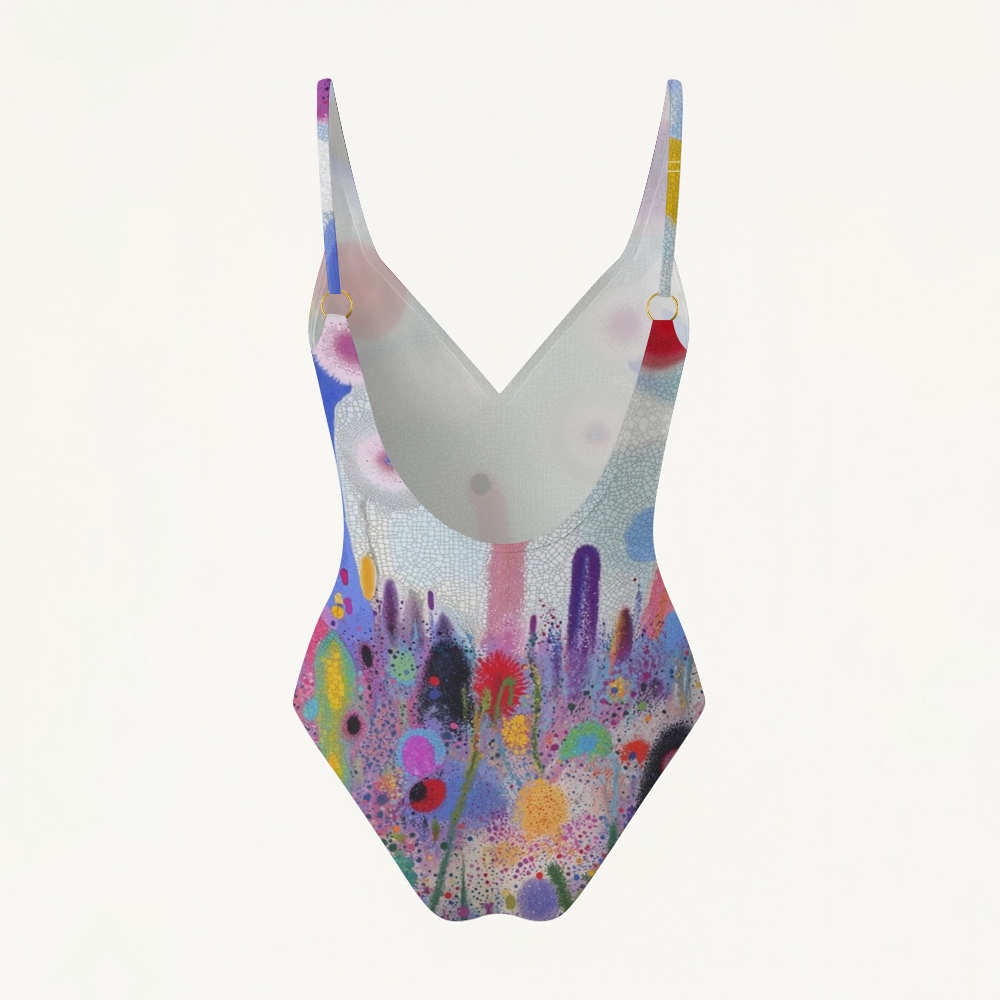 Rainbow Splatter Dot Print Plunging V-Back One-Piece Swimsuit