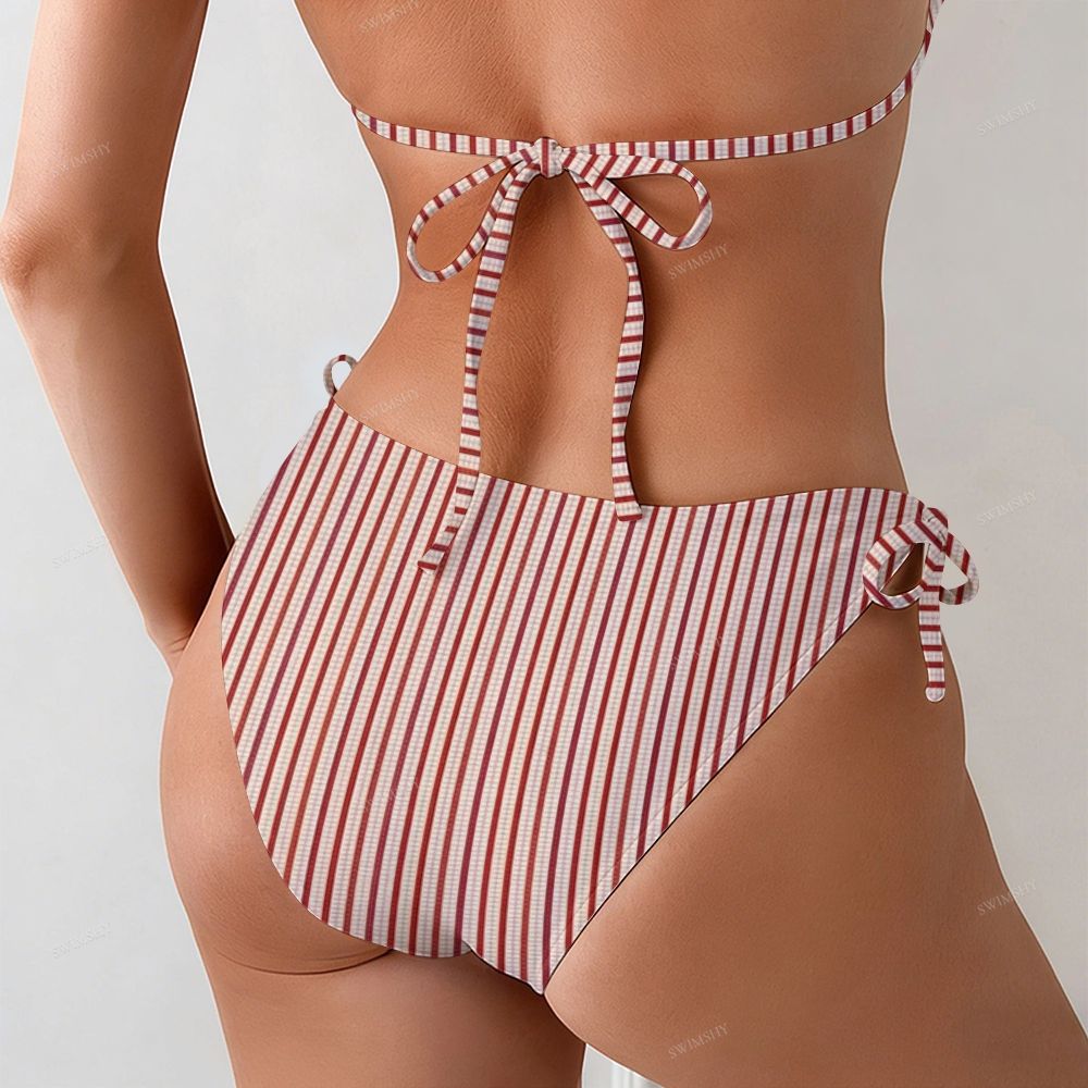 Red and White Striped Halter Triangle Bikini