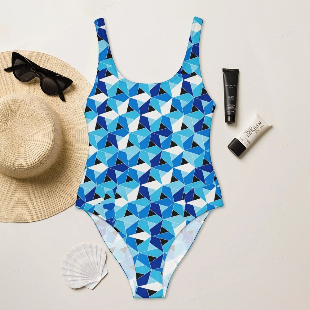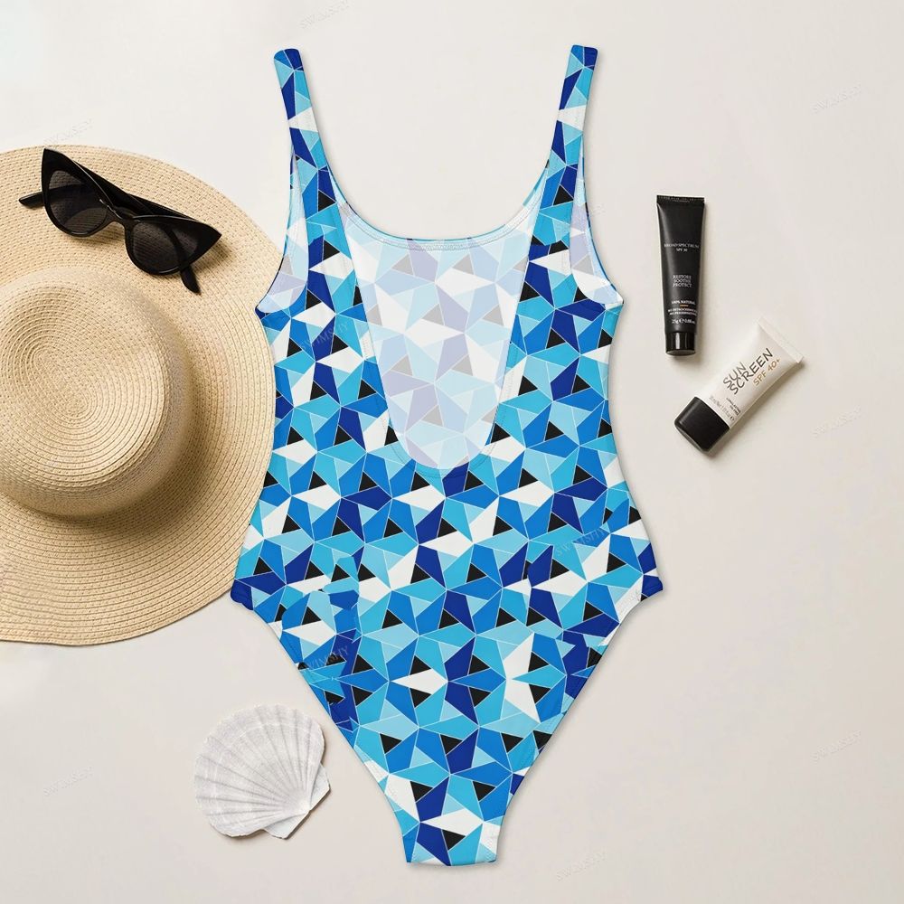 Blue Geometric Triangle Print Deep U-Back One-Piece Swimsuit