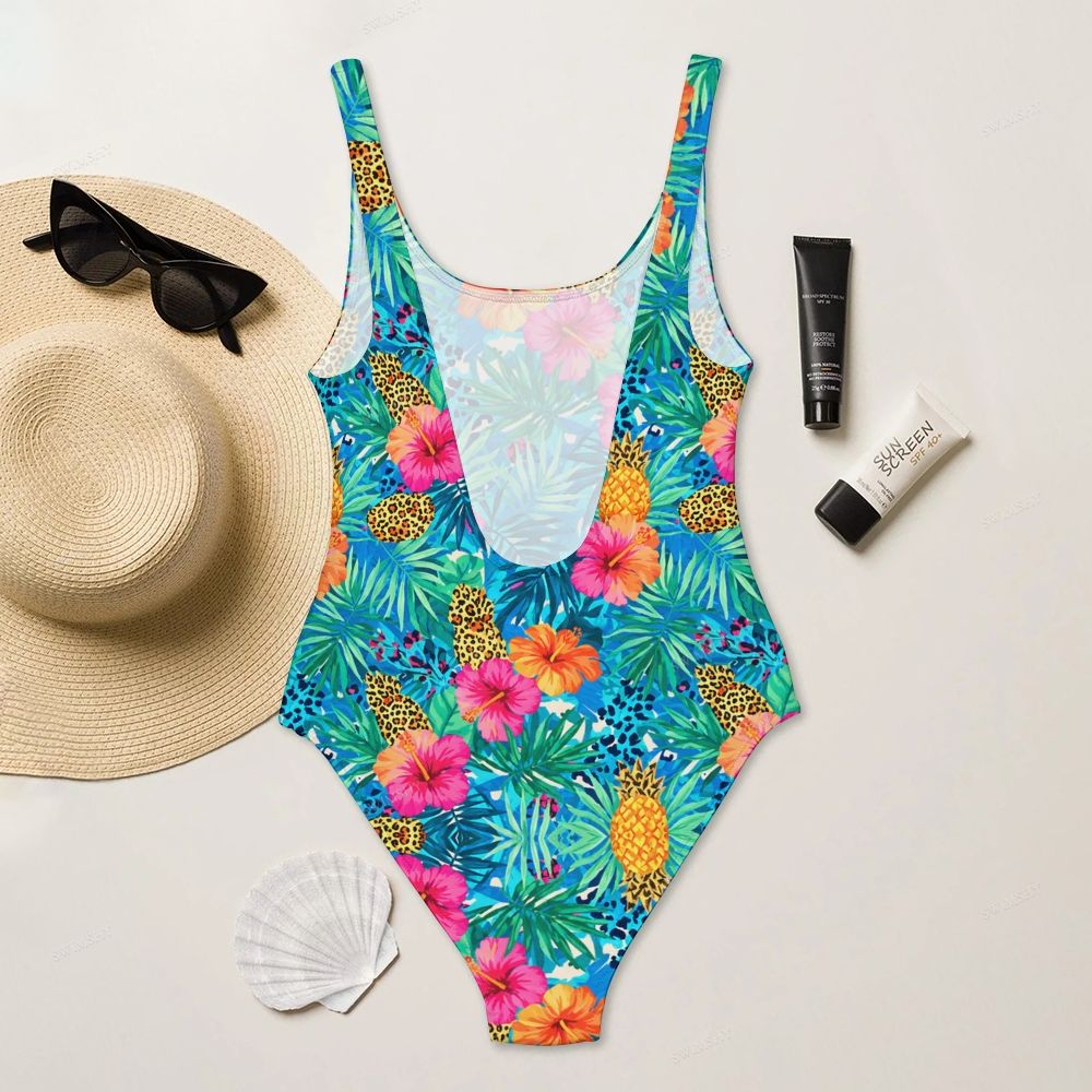 Vibrant Jungle Fruit Print Deep U-Back One-Piece Swimsuit