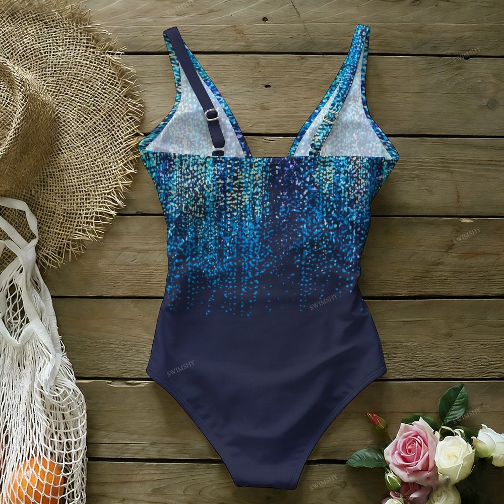 Blue Sparkle Gradient Print Deep U-Back One-Piece Swimsuit
