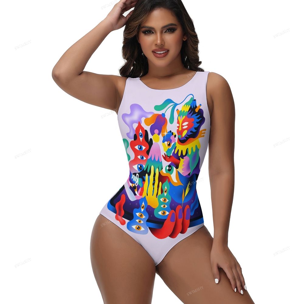 Psychedelic Abstract Print One-Piece Swimsuit