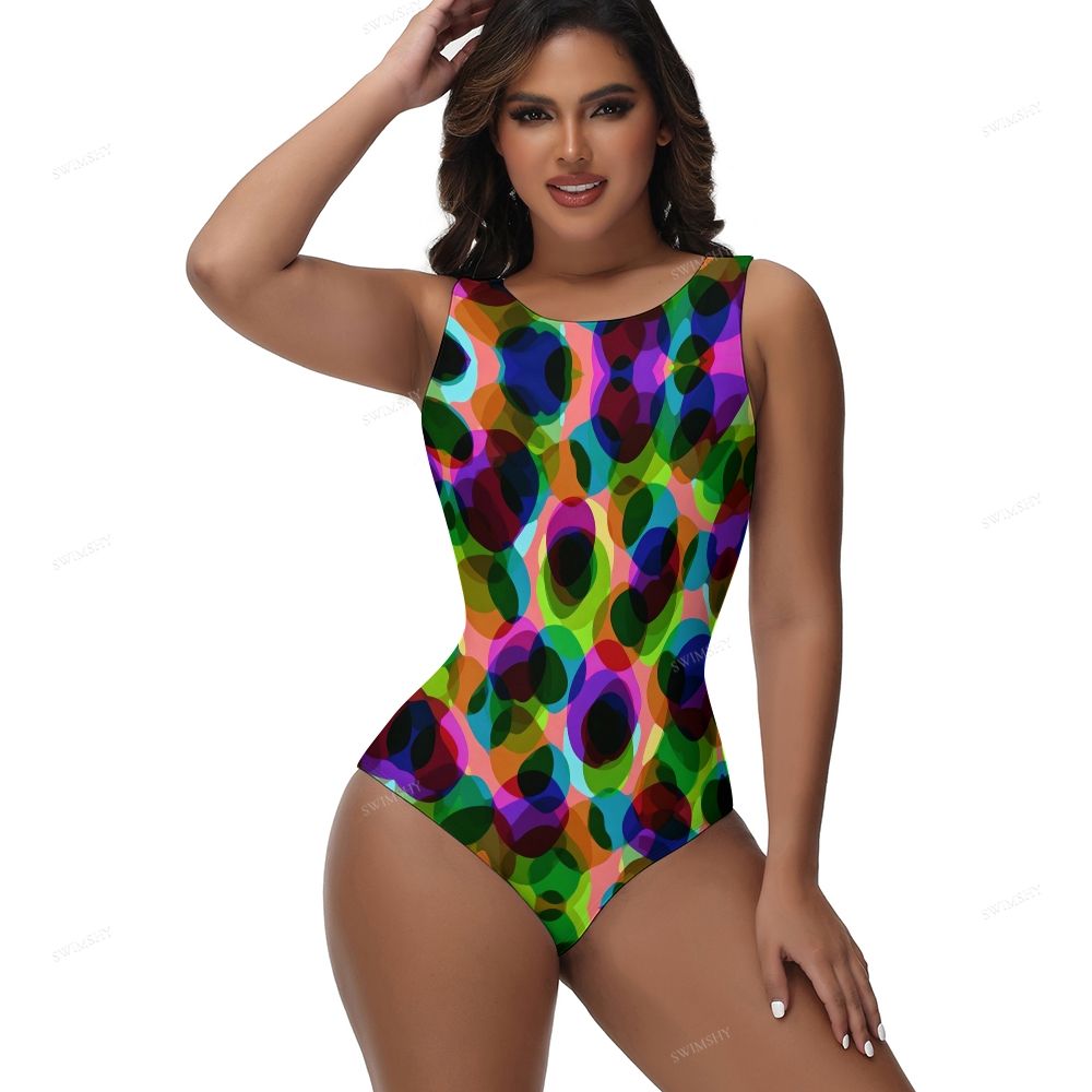 Colorful Overlapping Dots Print One-Piece Swimsuit