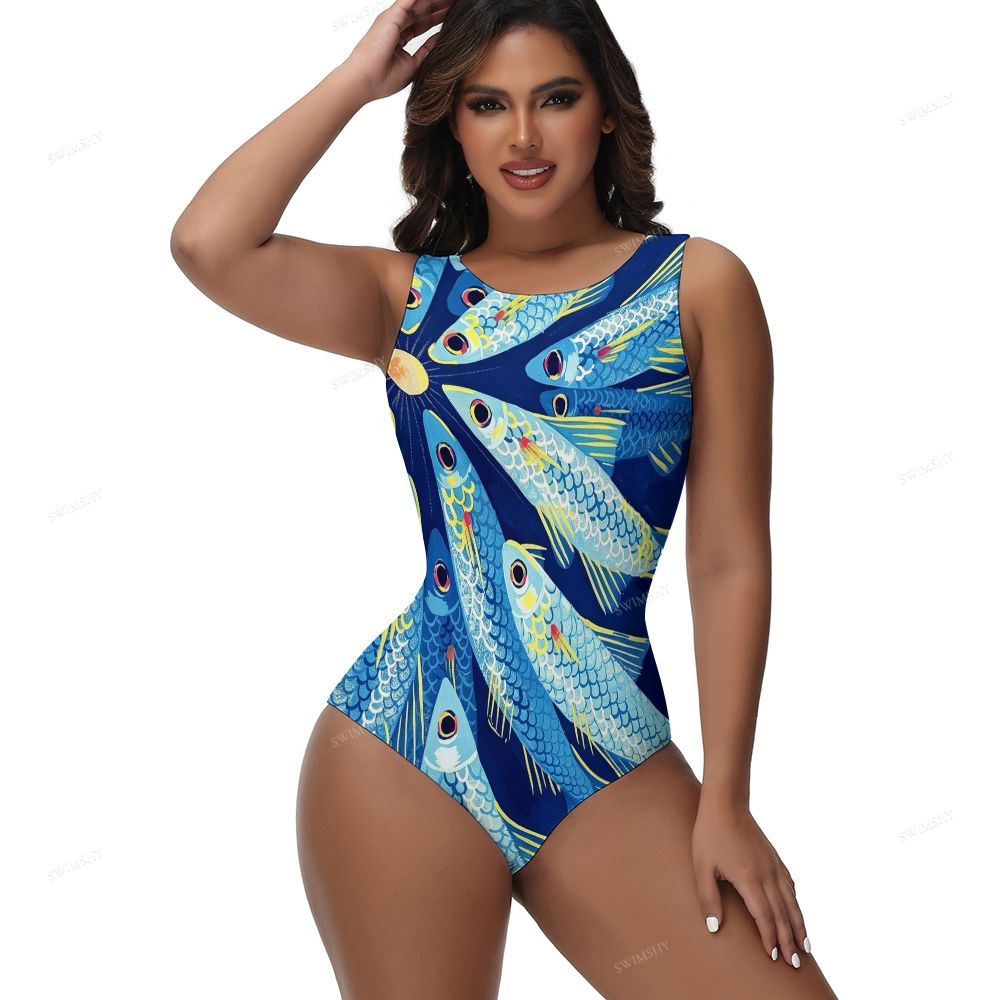 Tropical Blue Fish Print One-Piece Swimsuit