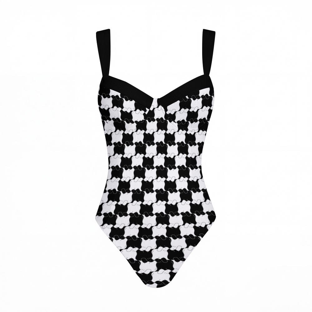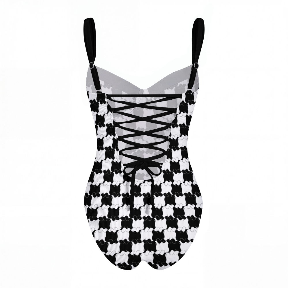 Checkerboard Print Cross Back Tummy Control One-Piece Swimsuit