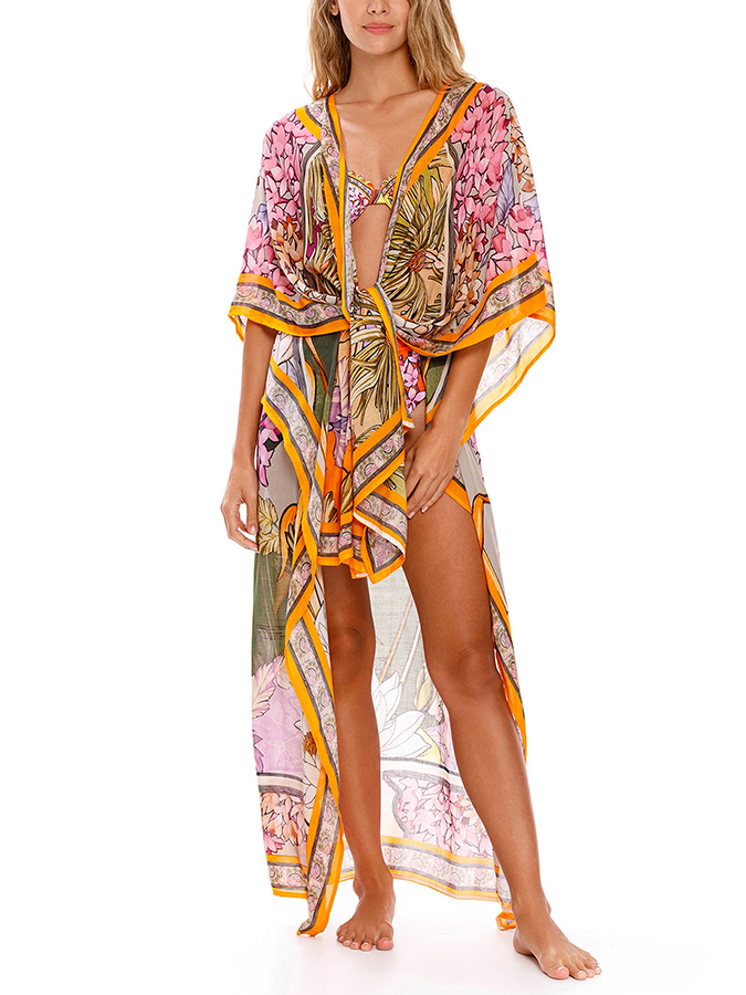 Colorblock Floral Print Beach Bikini and Cover-up