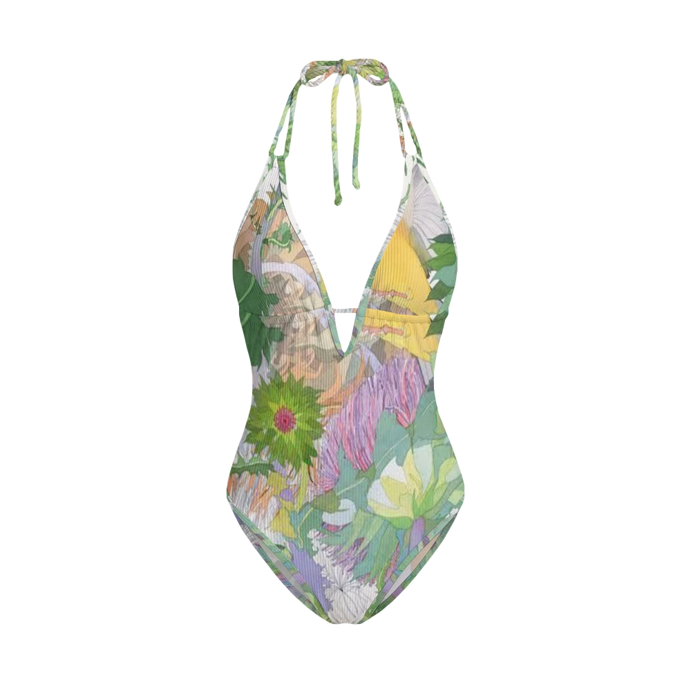 Lush Floral Print V Neck One-Piece Swimsuit