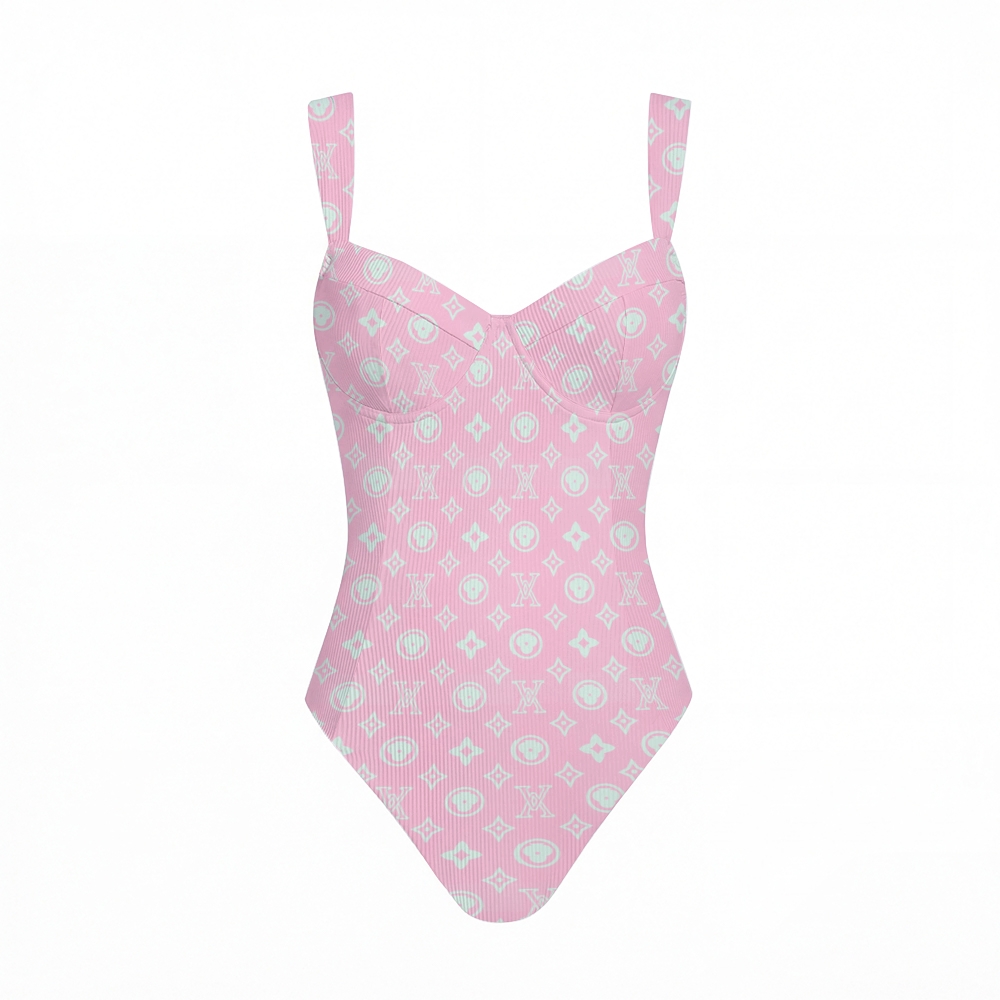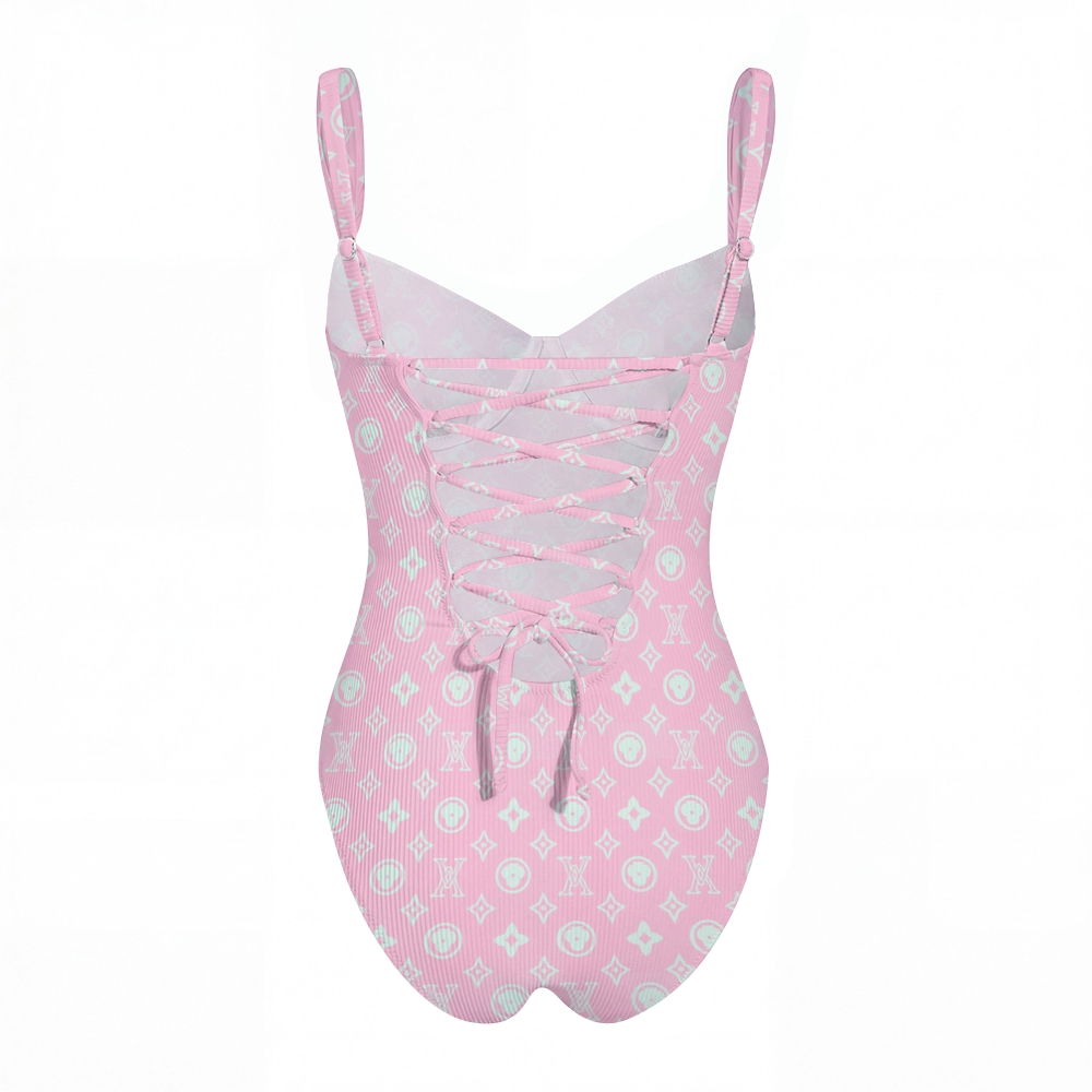 Pink Mint Monogram Print Cross Back Tummy Control One-Piece Swimsuit
