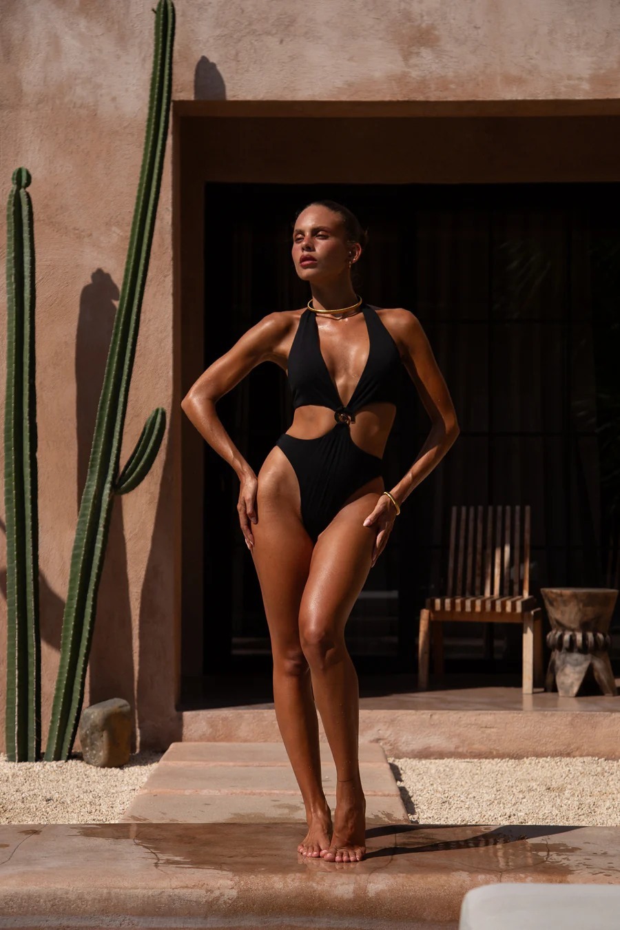 Halter Cutout Waist One-piece Swimsuit
