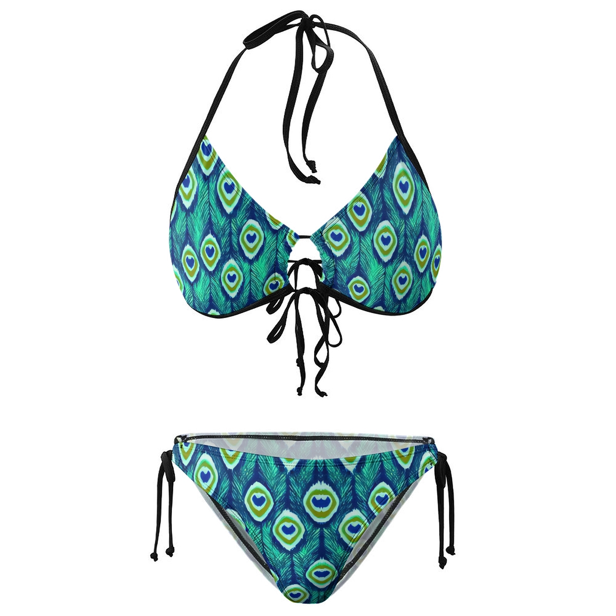 Peacock Feather Eye Print Halter Side Tie Triangle Bikini