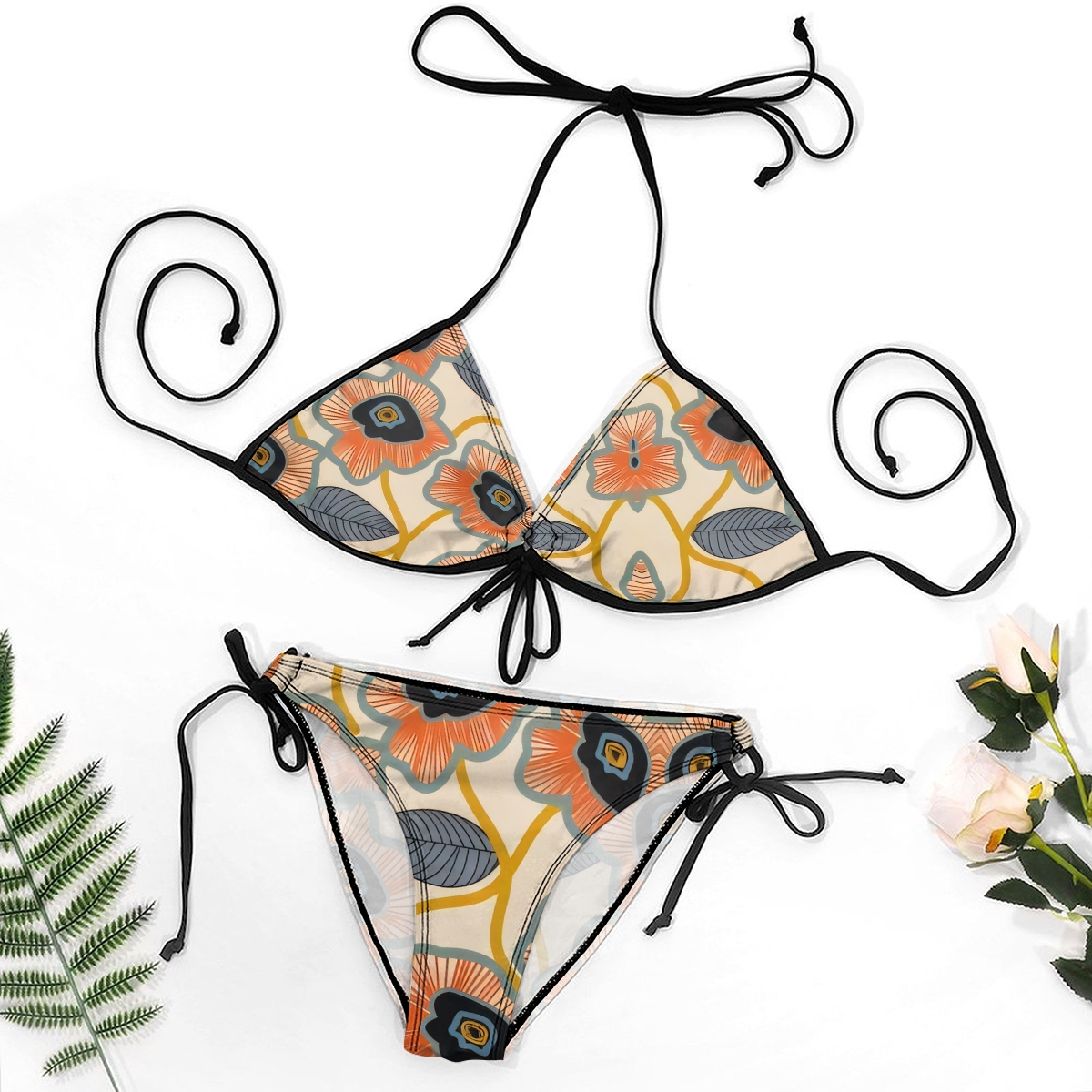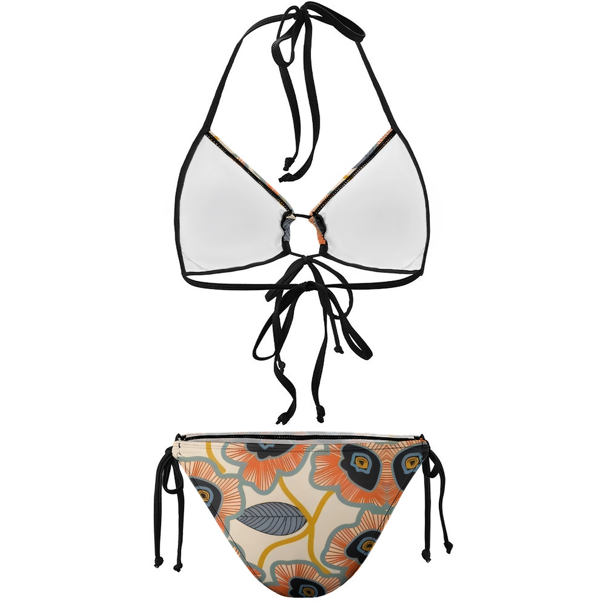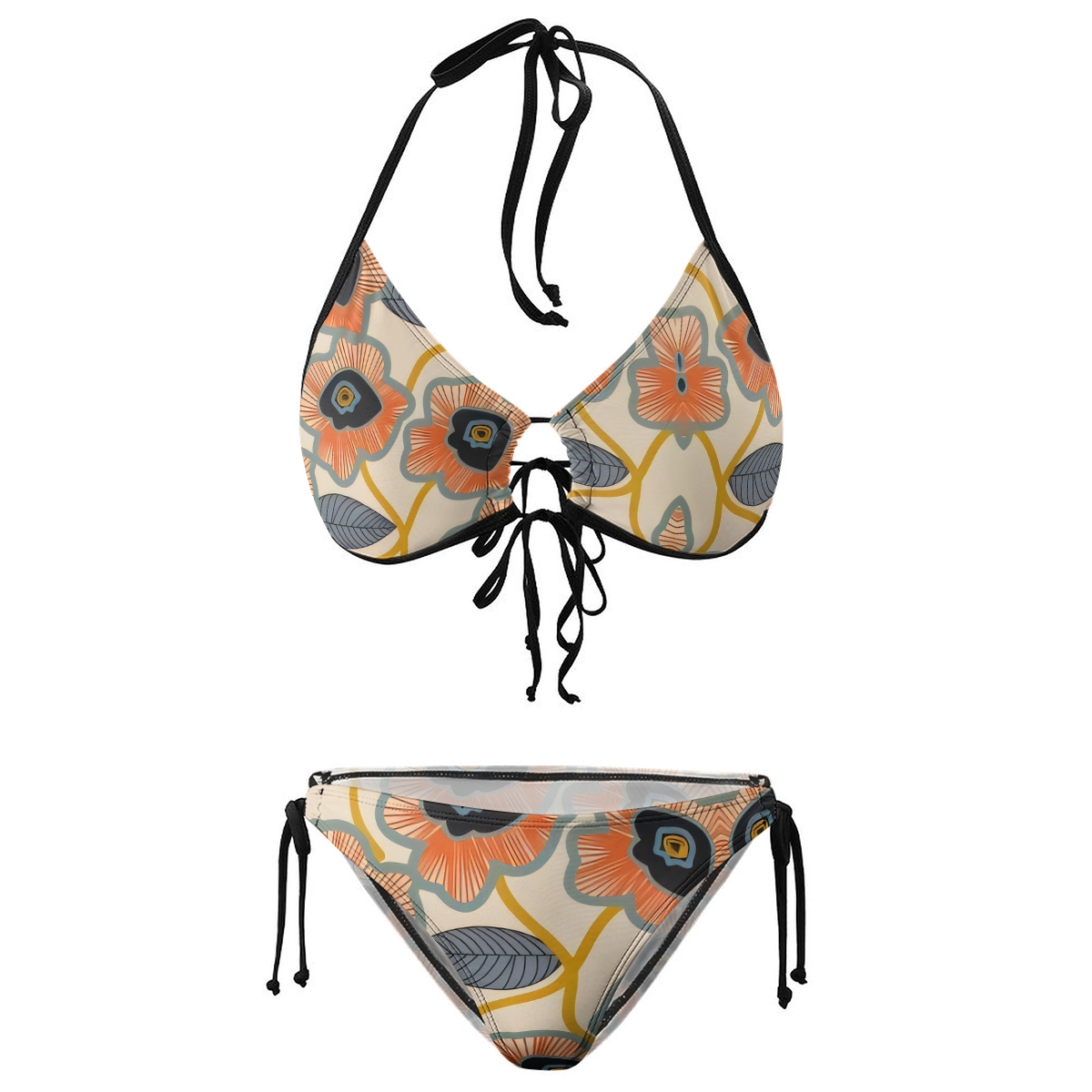 Vintage Geometric Floral Print Halter Side Tie Triangle Bikini