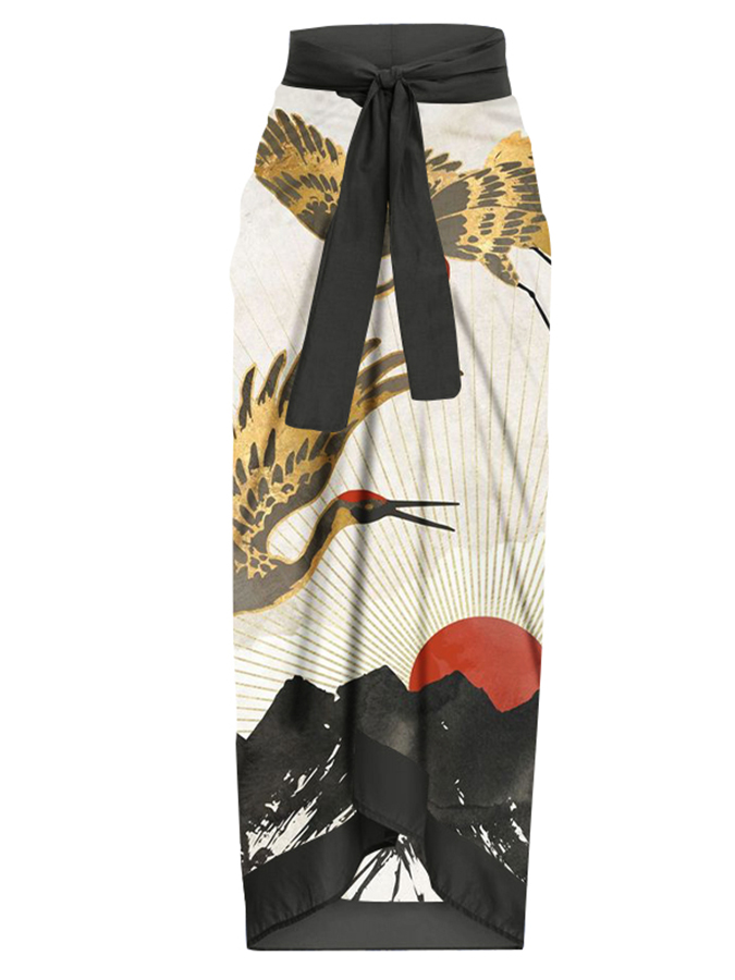 Chiffon Print One-Piece Swimsuit and Long Sleeve Dress