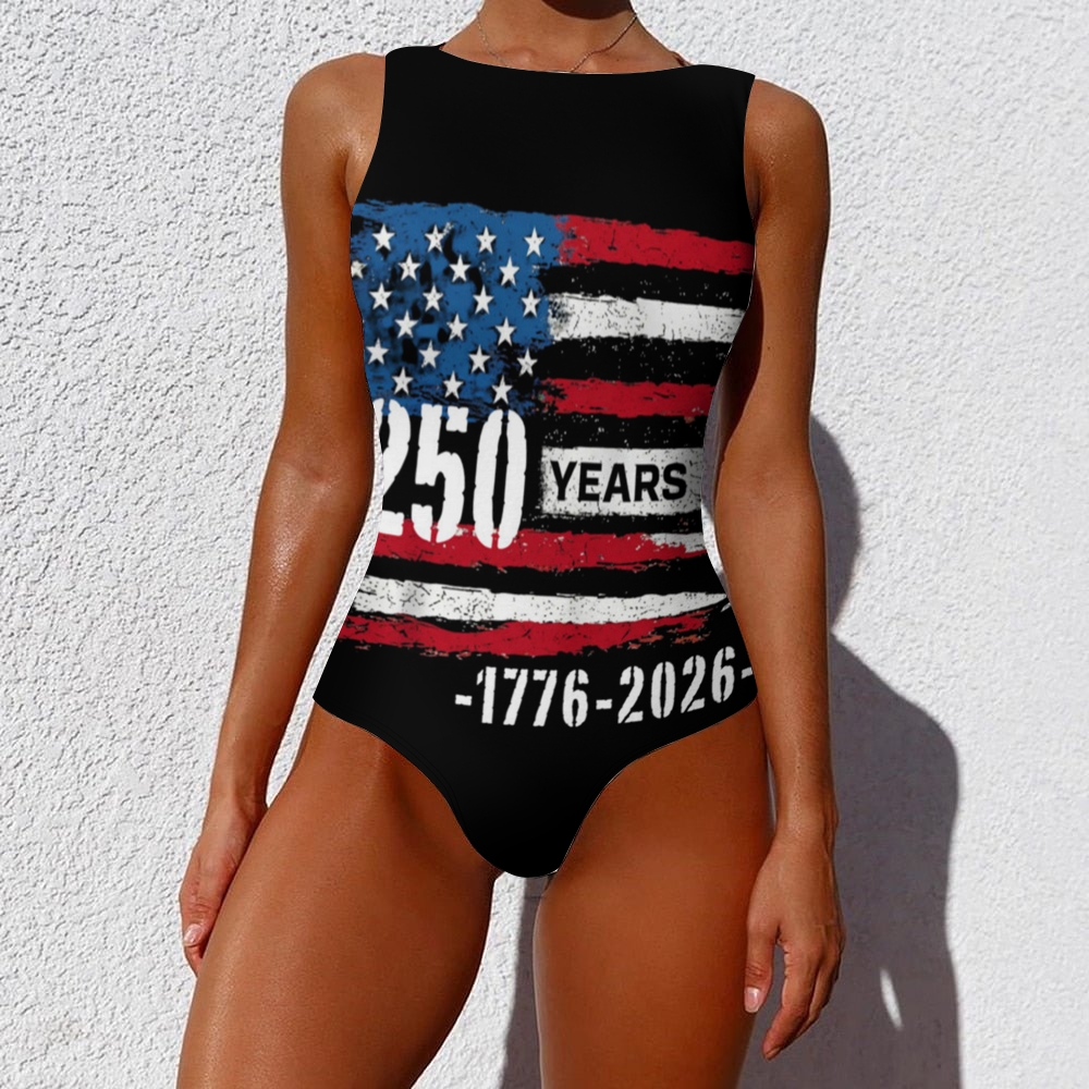 USA 250th Anniversary Patriotic Print One Piece Swimsuit