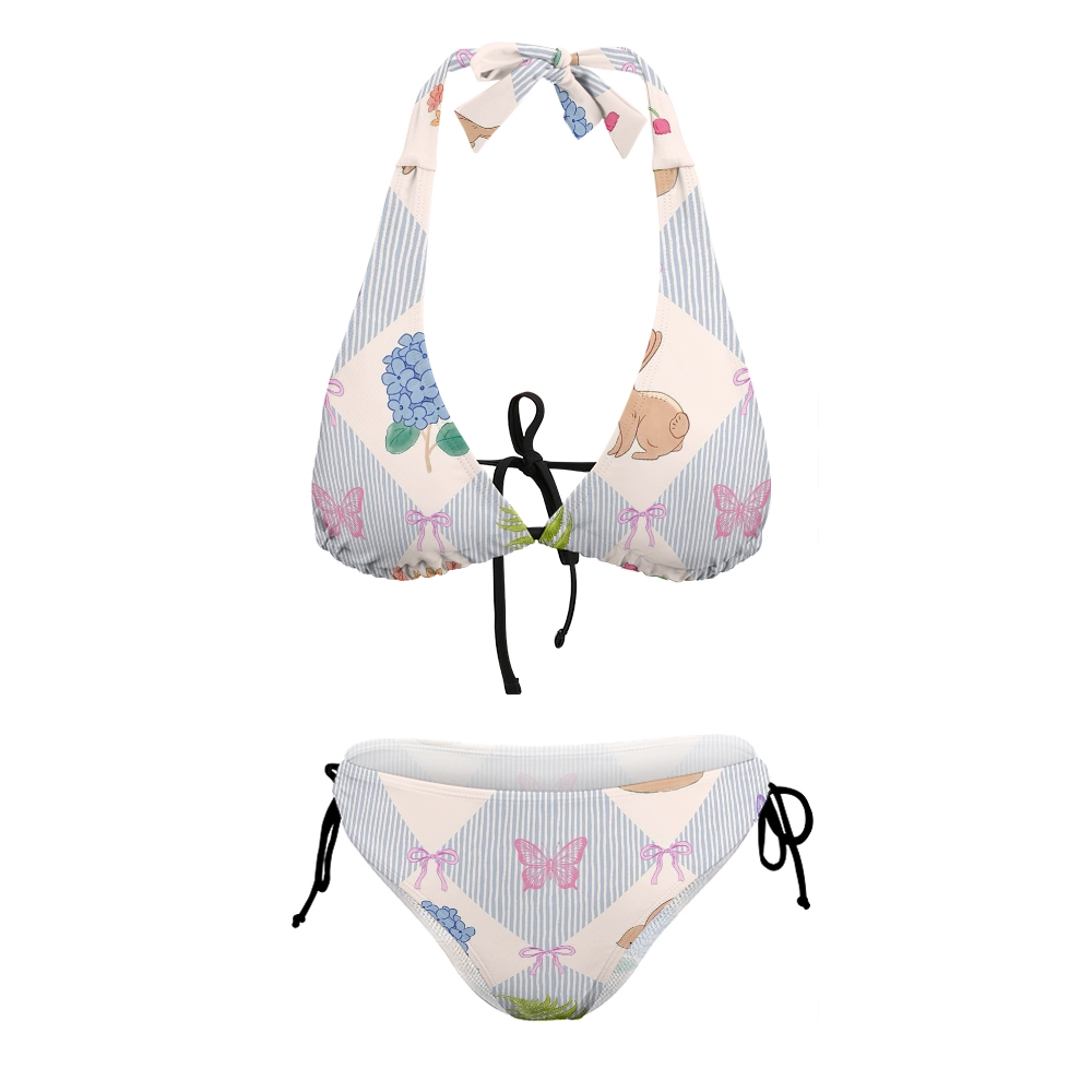 Easter Bunny Floral Halter Triangle Bikini
