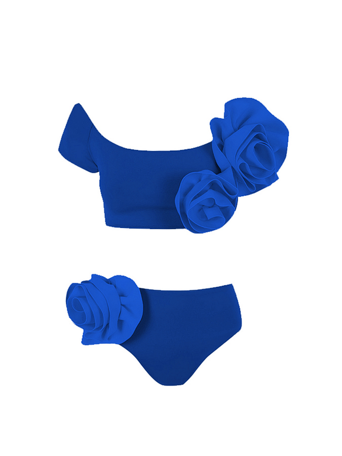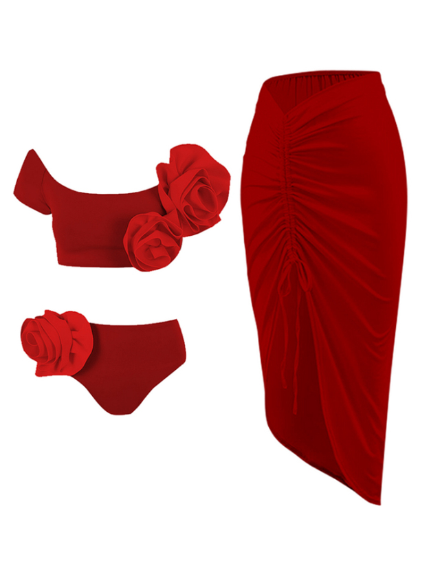 3D Flower Decor Bikini Swimsuit And Beach SKirt
