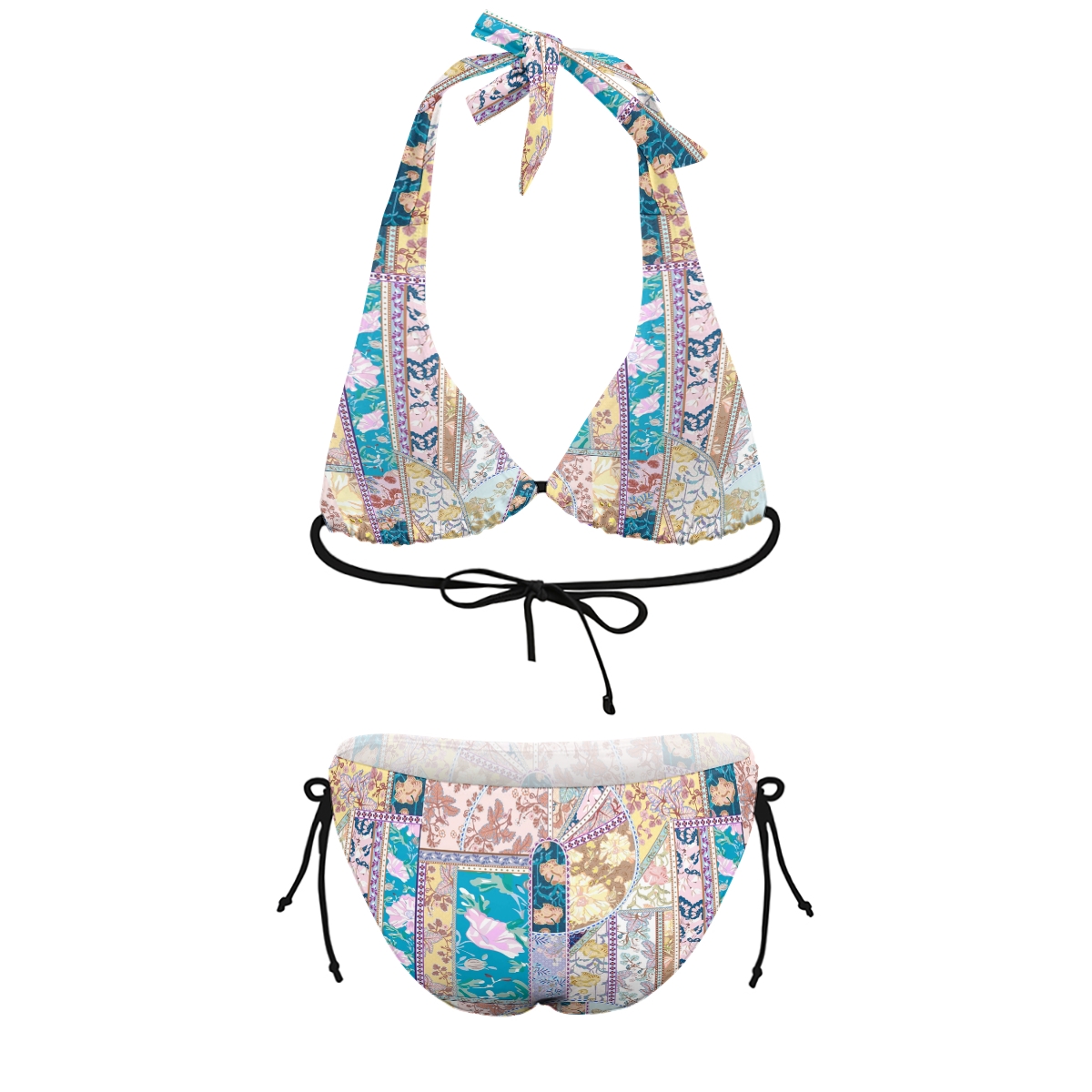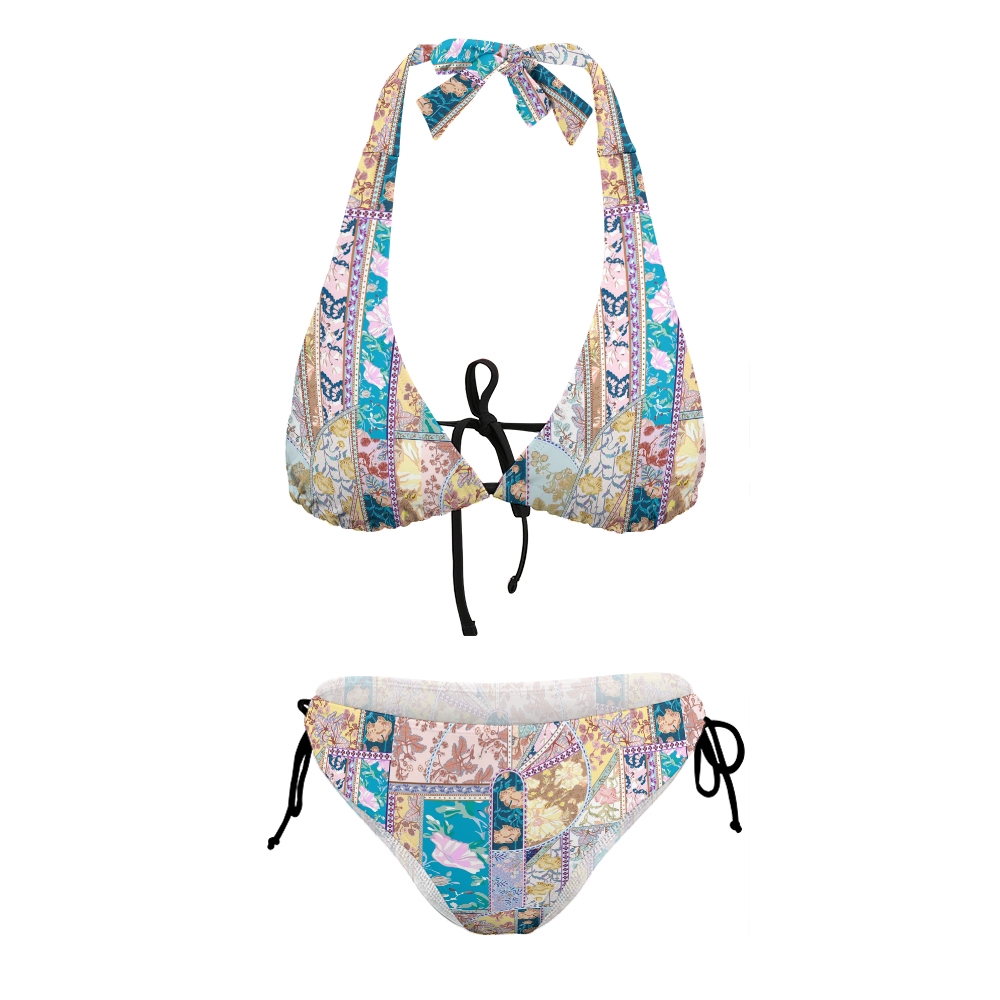 Bohemian Patchwork Floral Halter Triangle Bikini