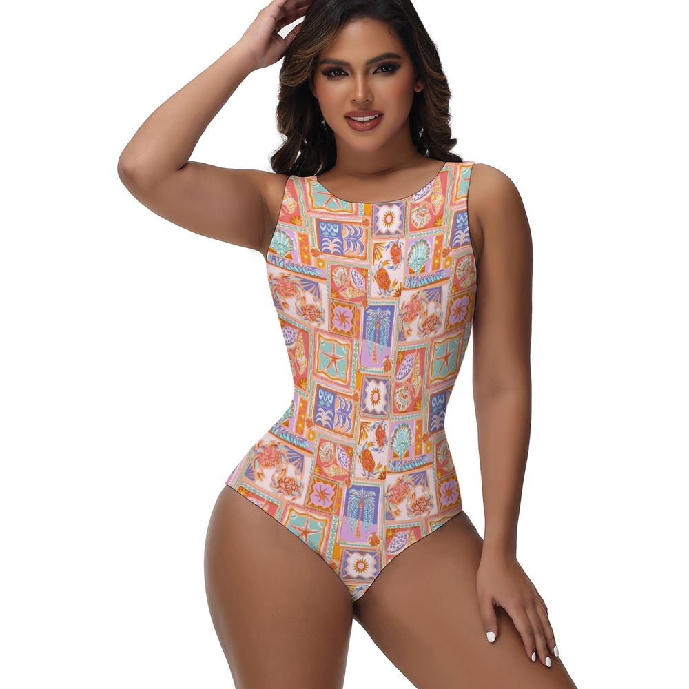 Crab & Shell Patchwork Print One-Piece Swimsuit
