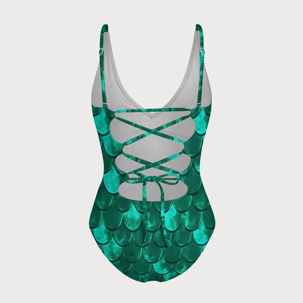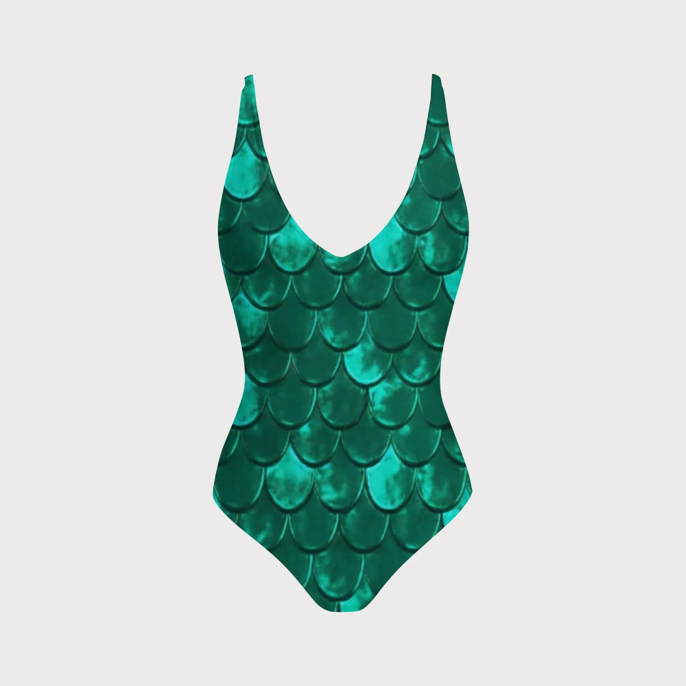 Mermaid Scale Off White V Neck Tummy Control One-Piece Swimsuit