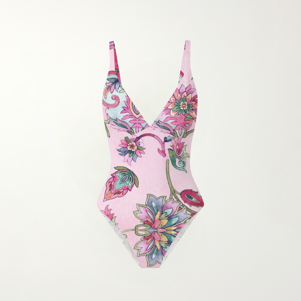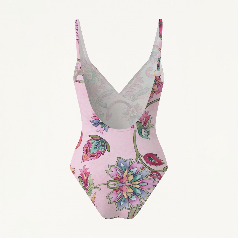 Tropical Paisley Flower Print Plunging V-Back One-Piece Swimsuit