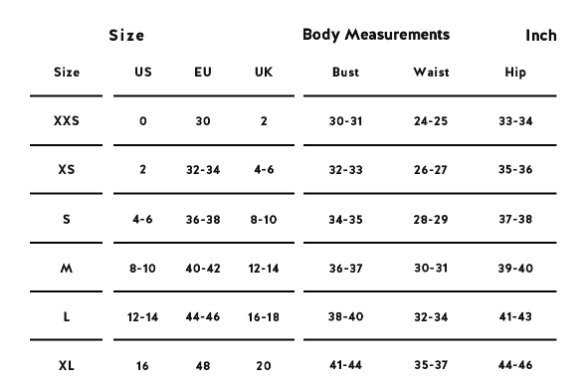 All of our garments are produced in US sizing. Sizing and cut may vary between fits. Please use this chart as a general guide. If you need assistance selecting the proper size, please contact Customer Care.
