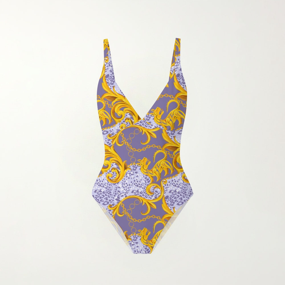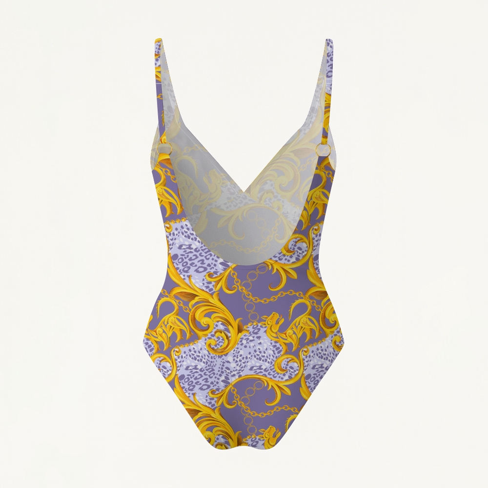 Baroque Leopard Print Plunging V-Back One-Piece Swimsuit