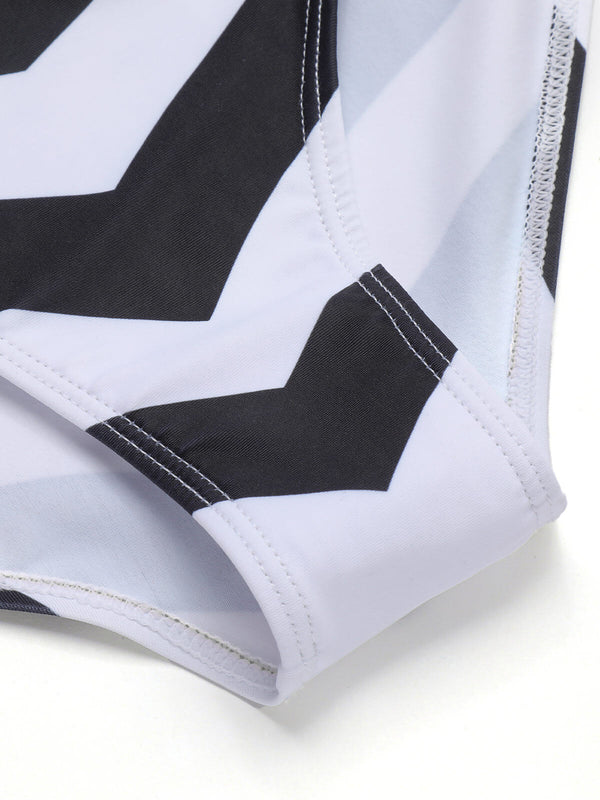 Black & White 1950s Barbie Stripes Halter Swimsuit