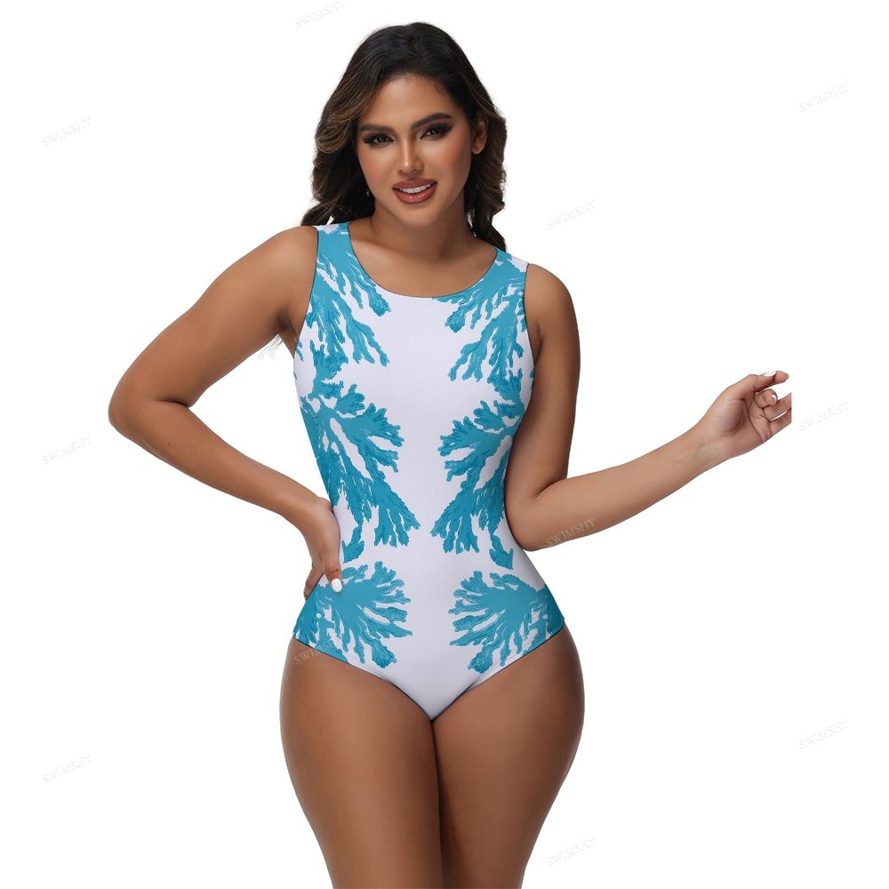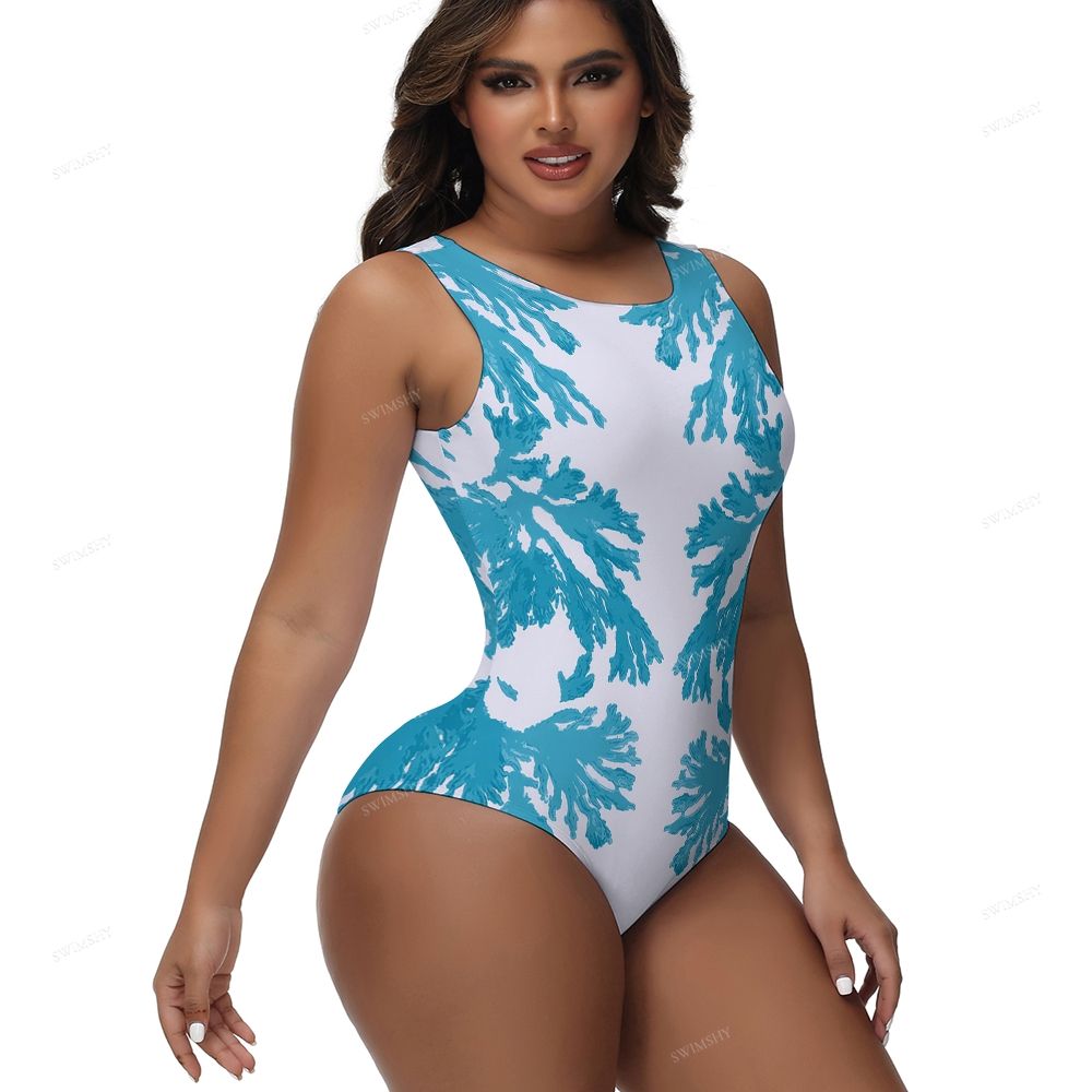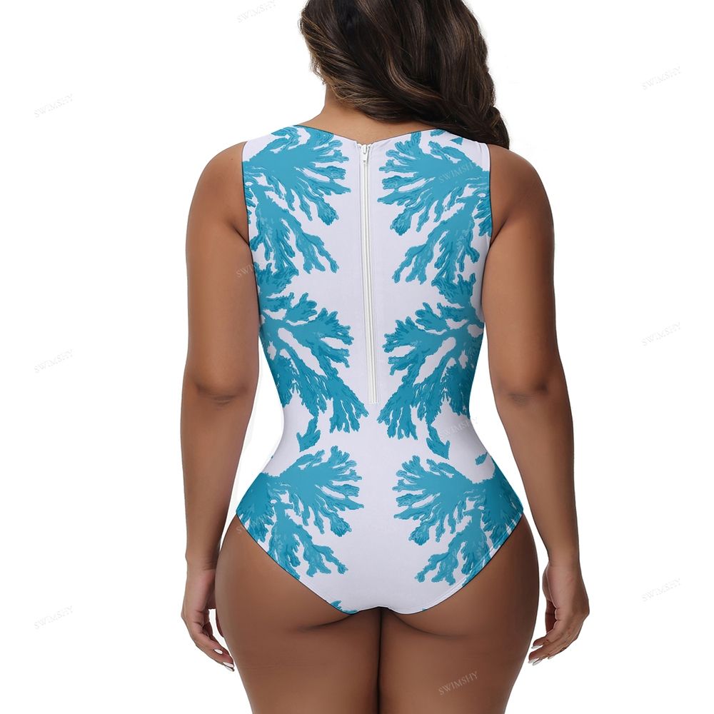 Blue Coral Print One-Piece Swimsuit