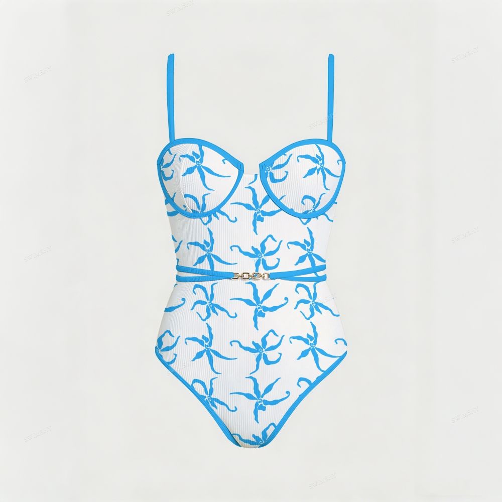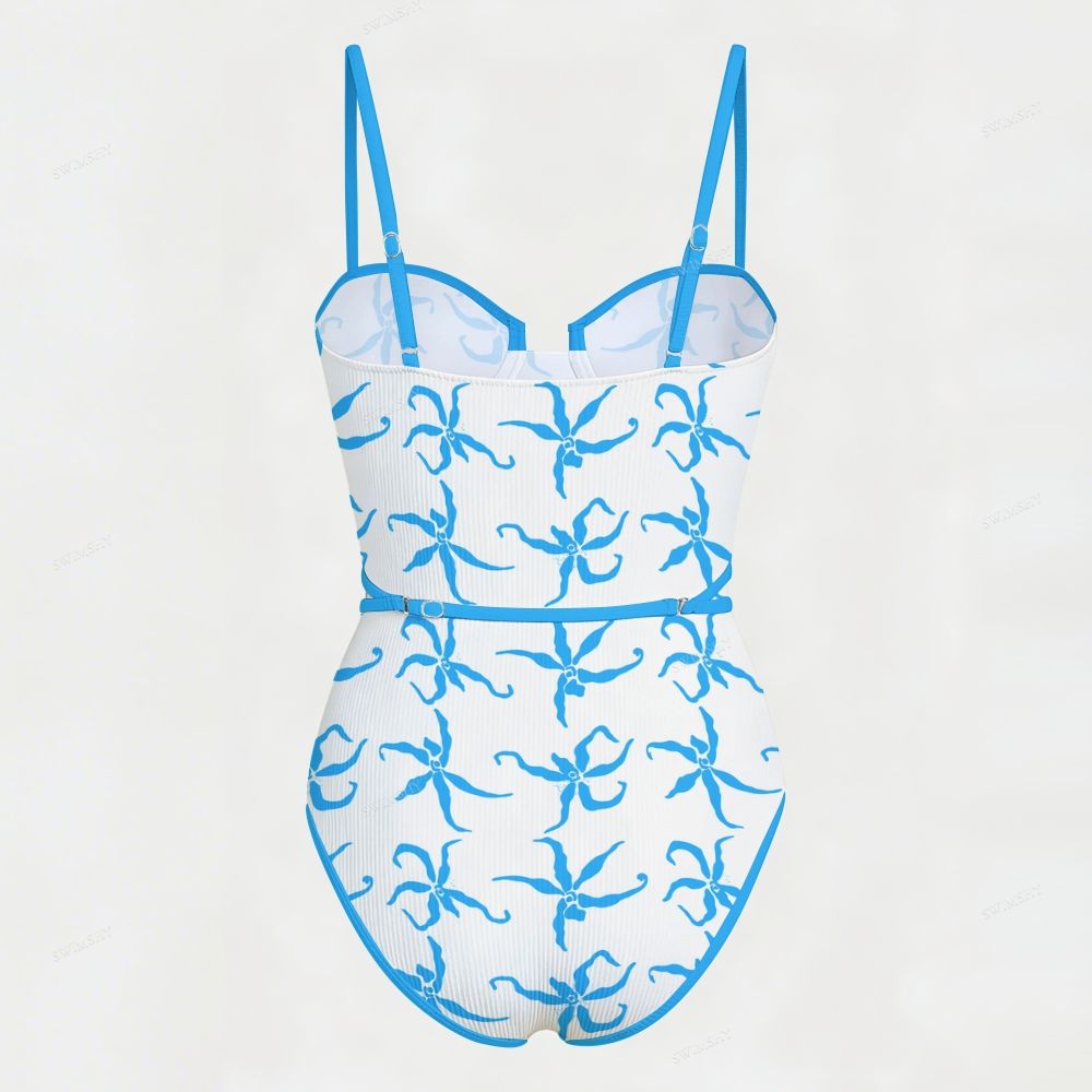Blue Orchid Print Underwire One Piece Swimsuit