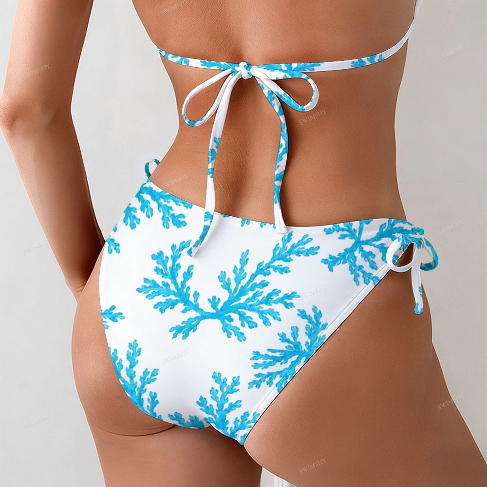 Coral Print Halter Triangle Tie Side Bikini