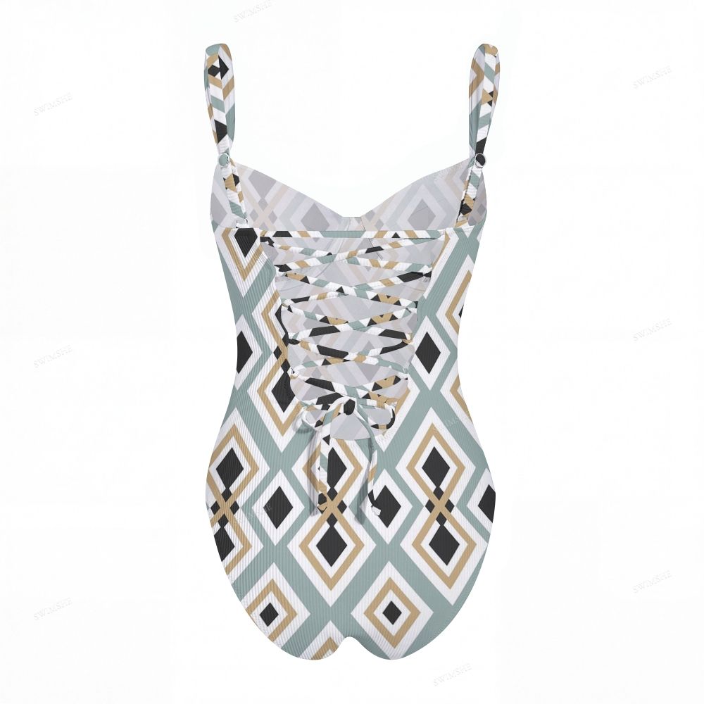 Desert Tile Cross Back Tummy Control One-Piece Swimsuit