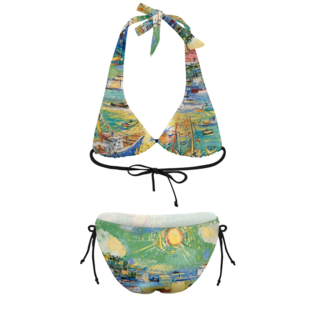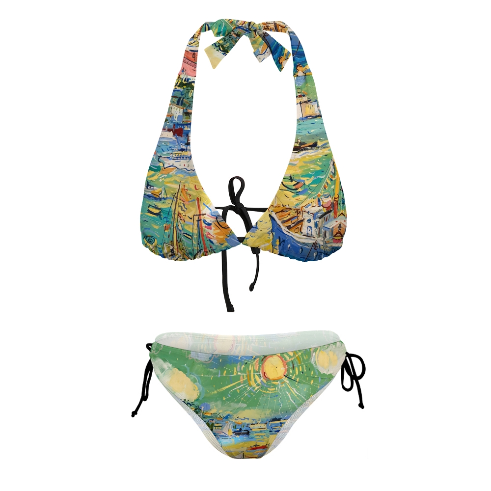Fauvist Oil Painting Marseille Harbor Print Halter Triangle Bikini