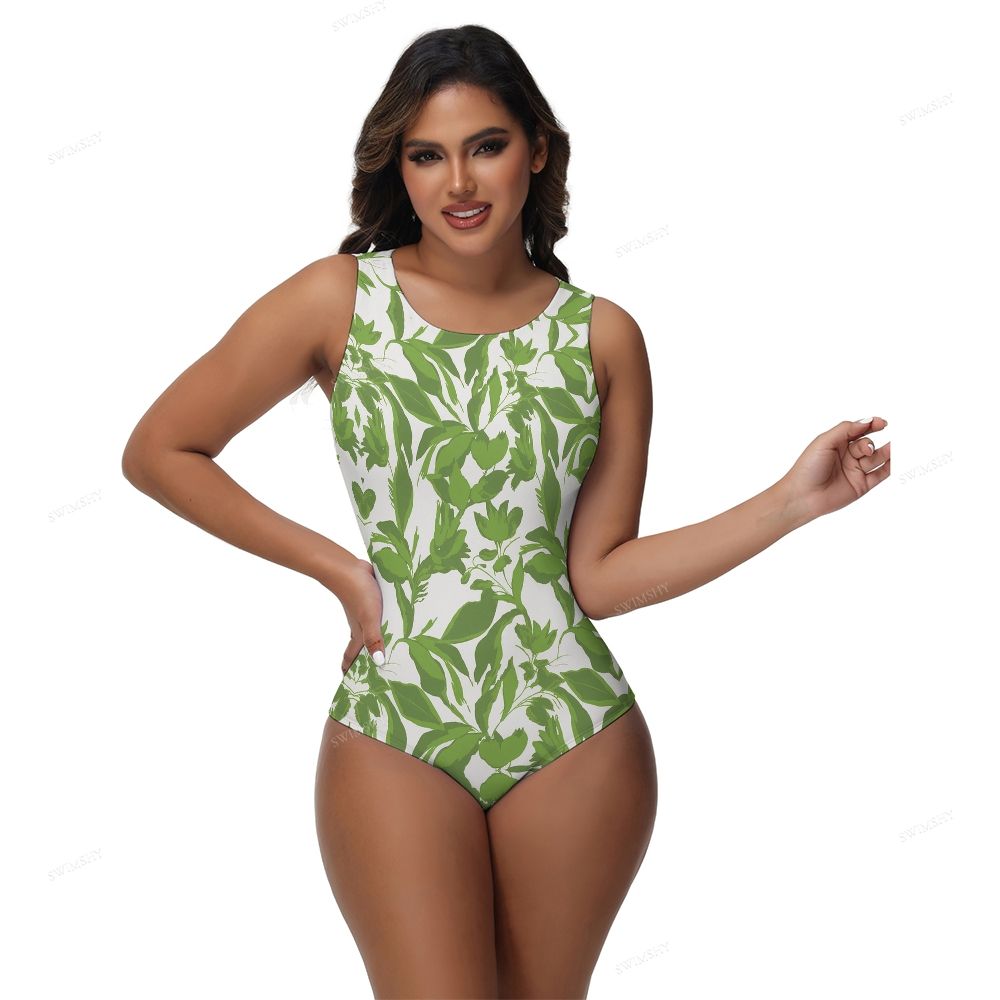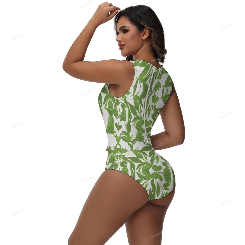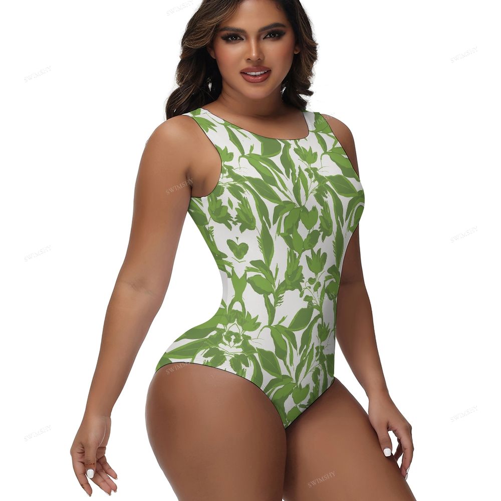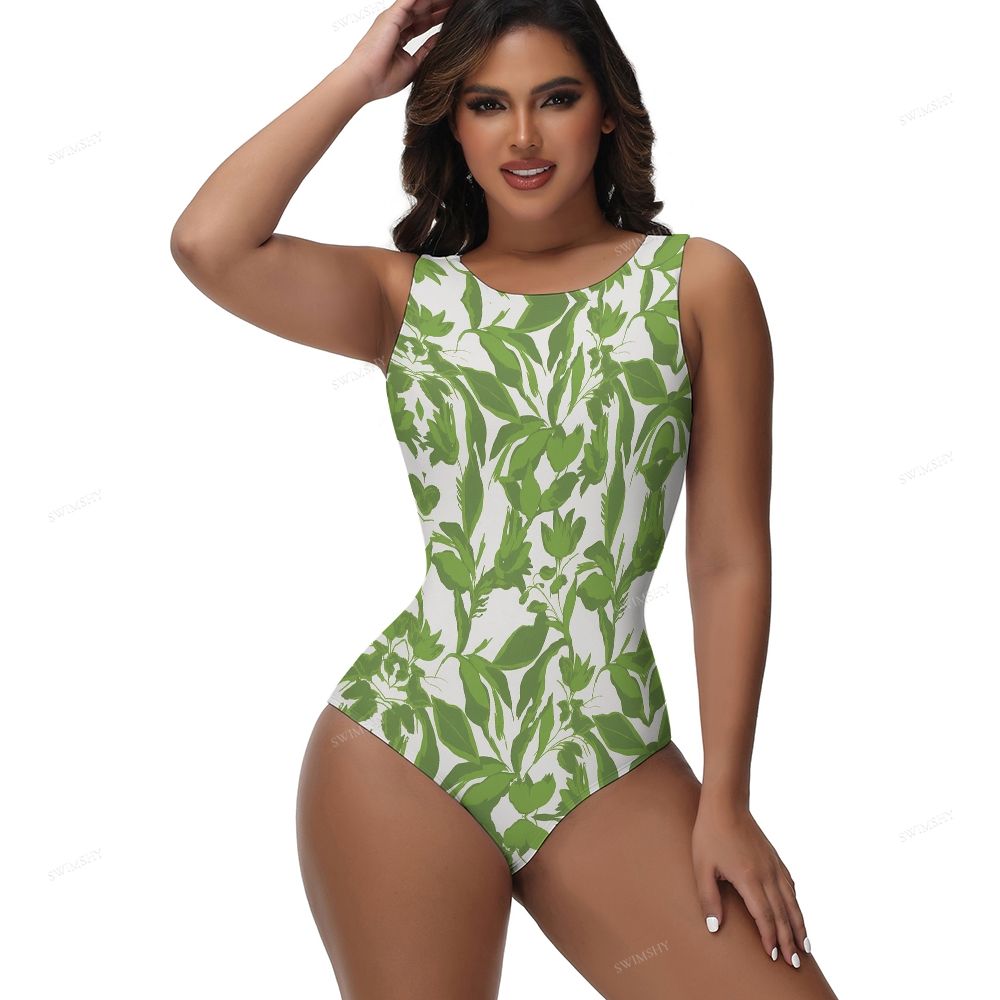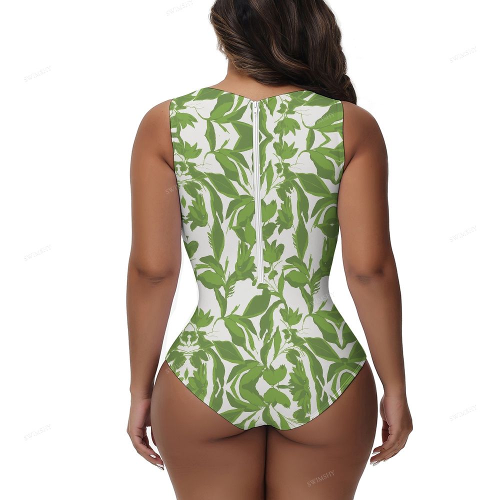 Green Leaf Print One-Piece Swimsuit