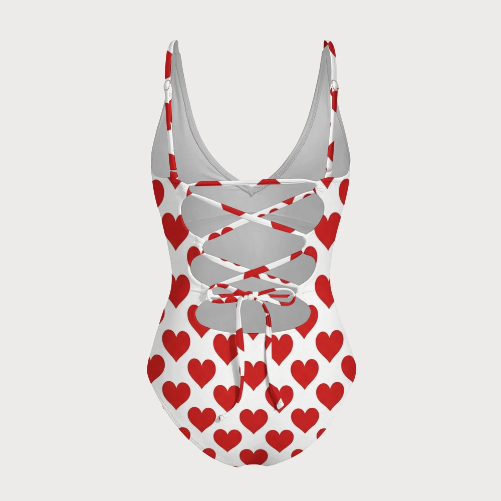 Heart Off White V Neck Tummy Control One-Piece Swimsuit