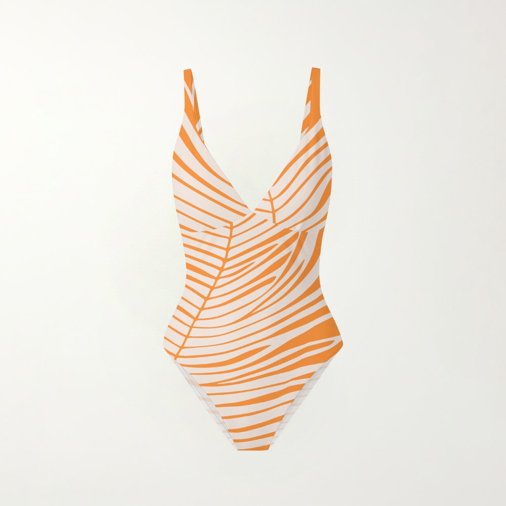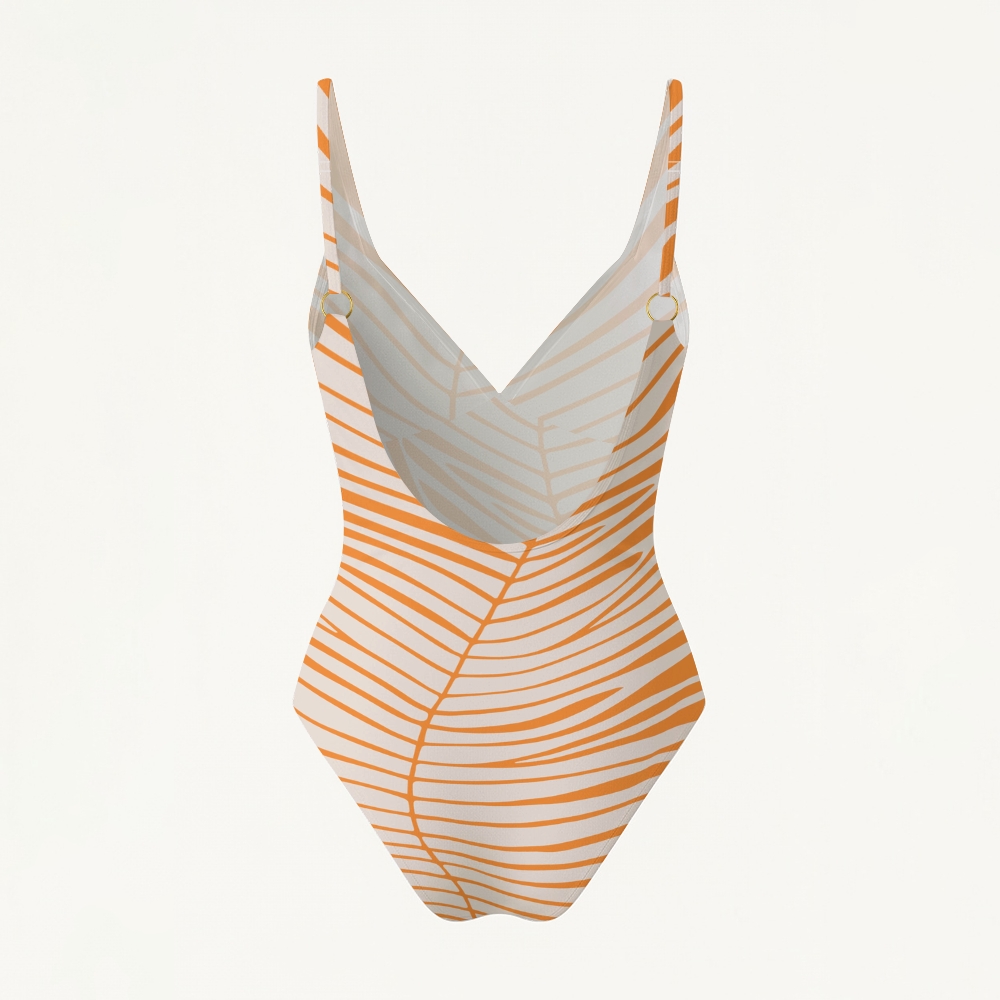 Leaf Stripe Print Plunging V-Back One-Piece Swimsuit