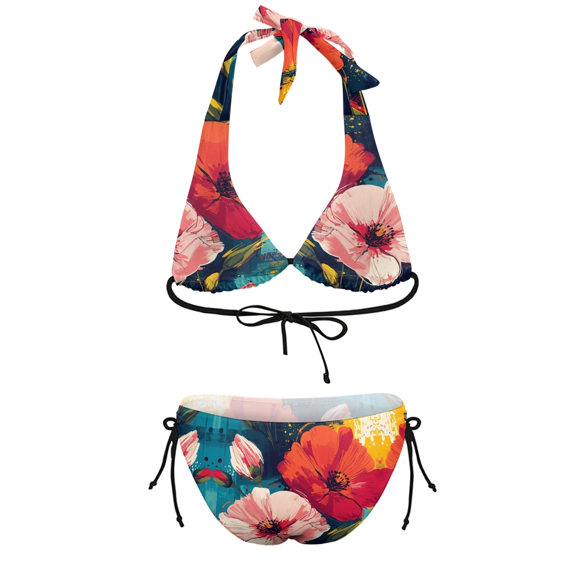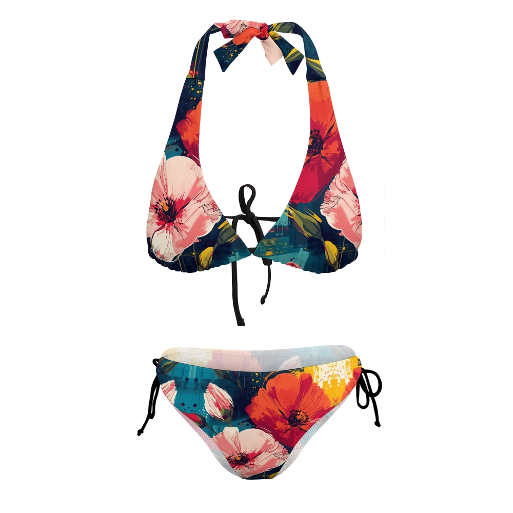 Oil Painting Poppy Halter Triangle Top Bikini