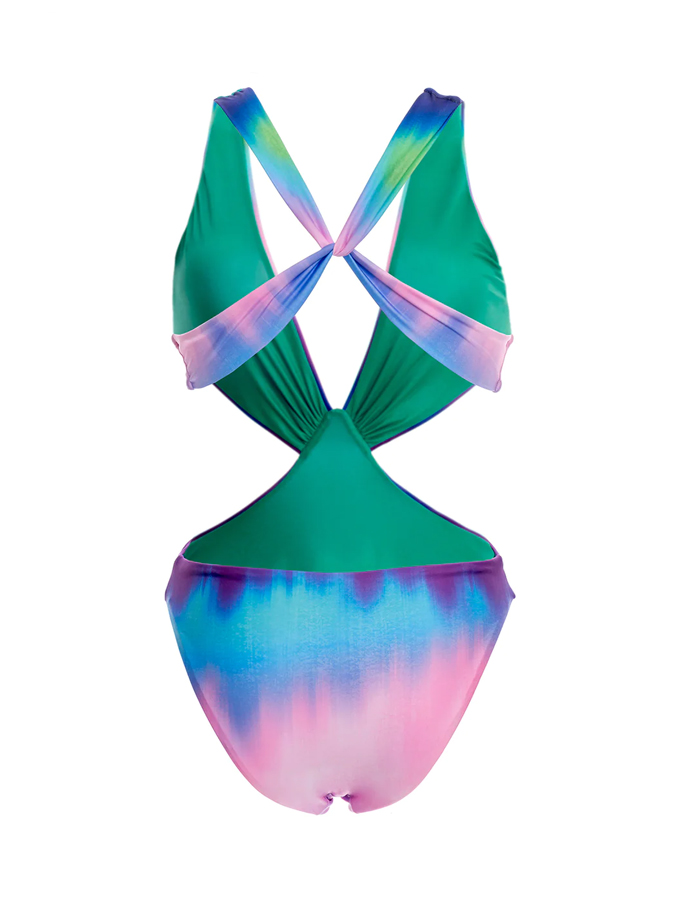 Ombre Print One Piece Swimsuit And Cover Up