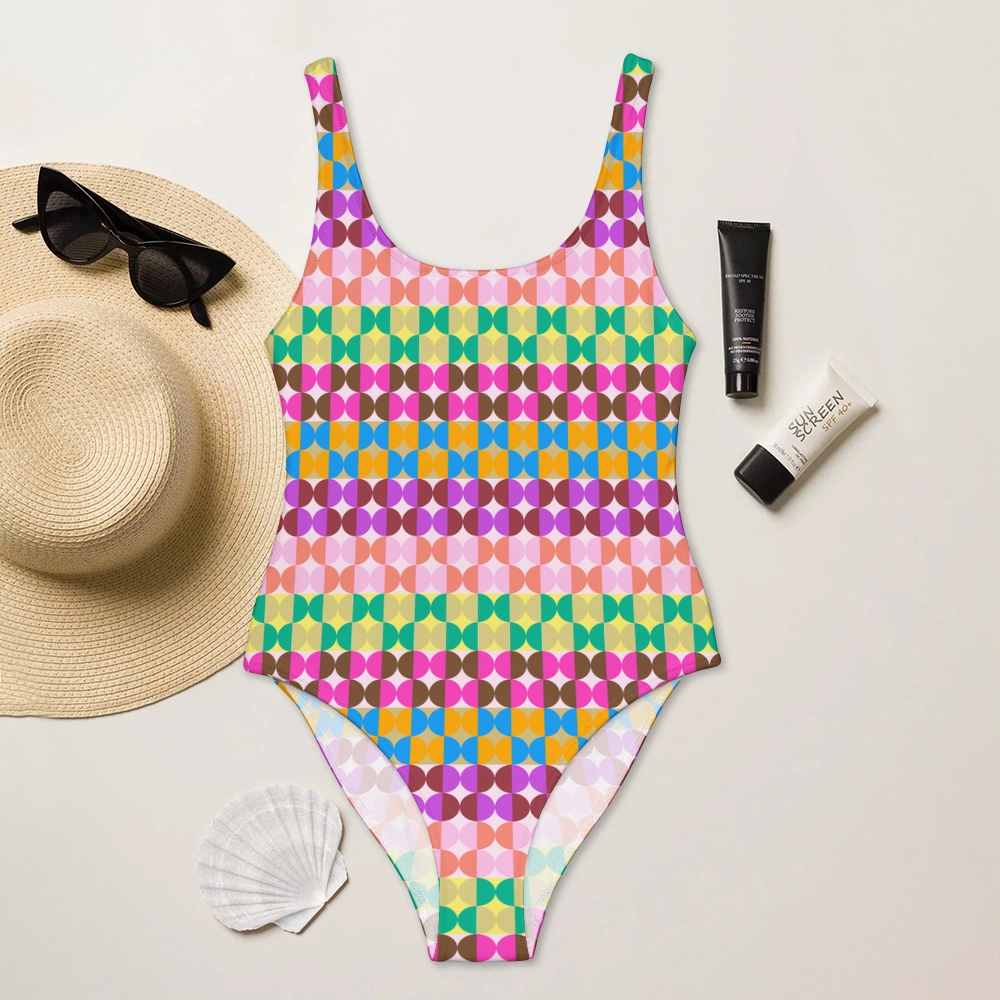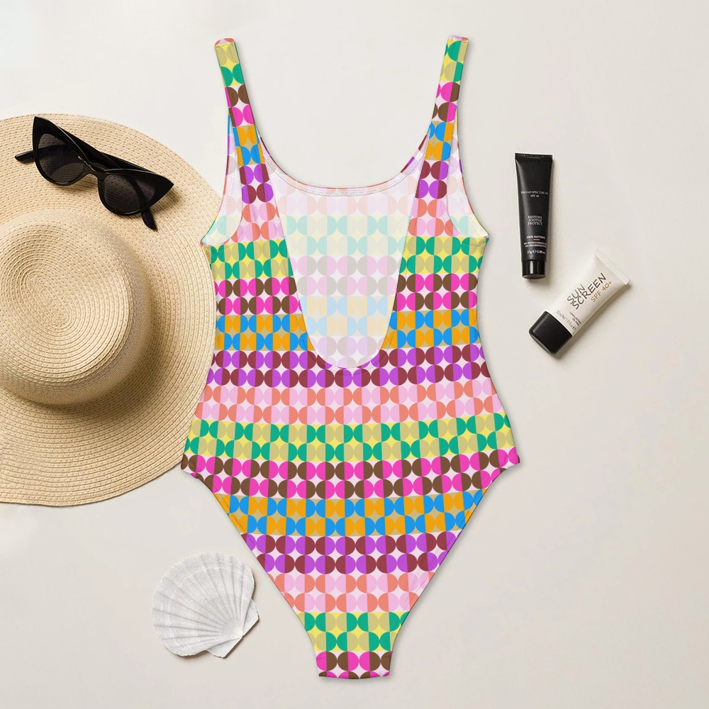 Rainbow Geometric Circle Print One Piece Swimsuit