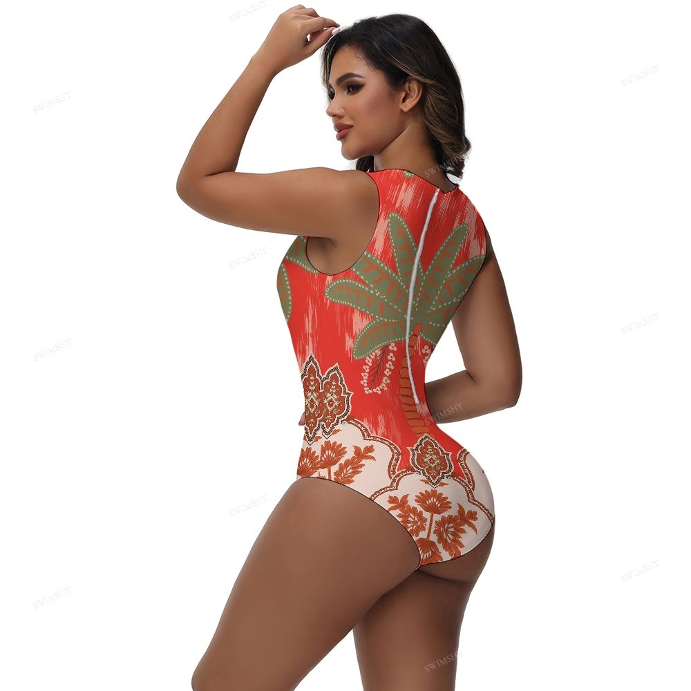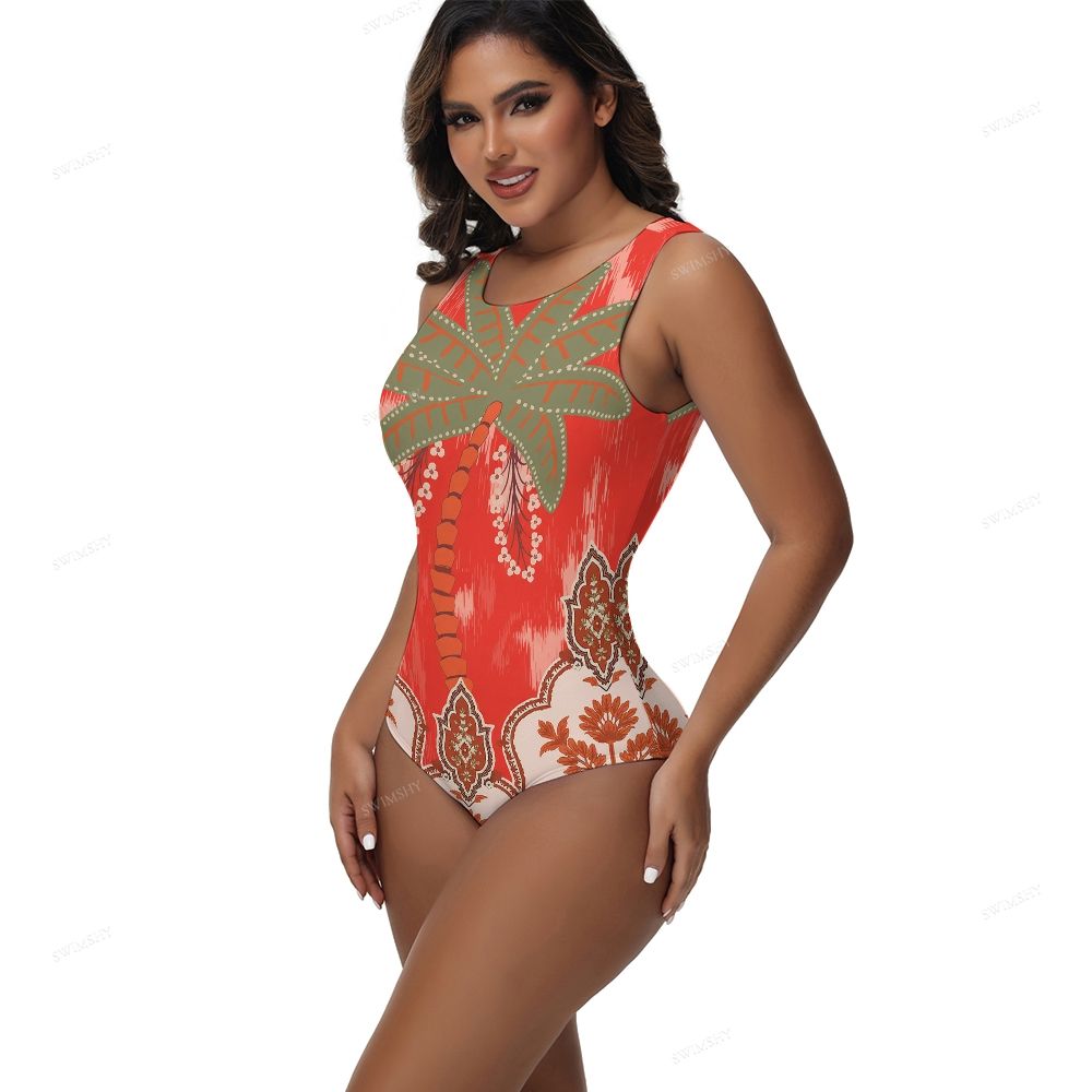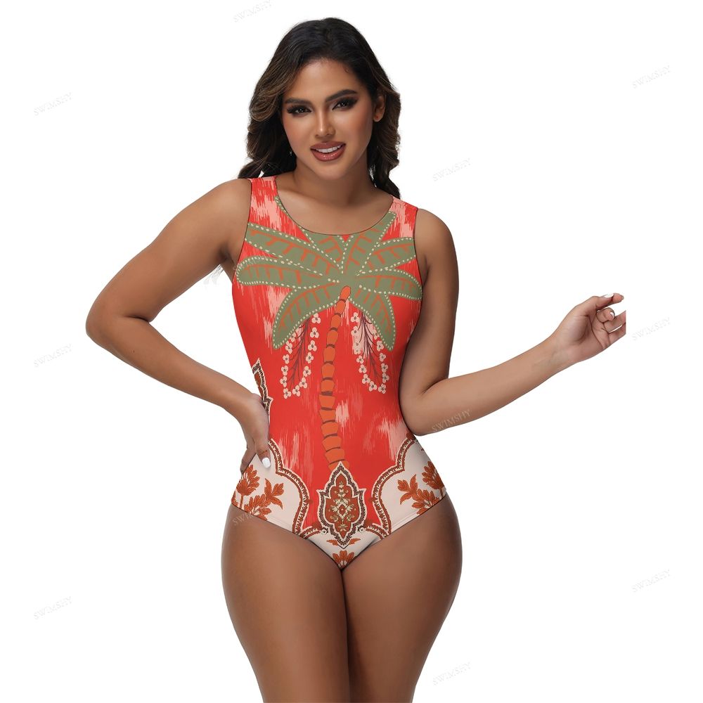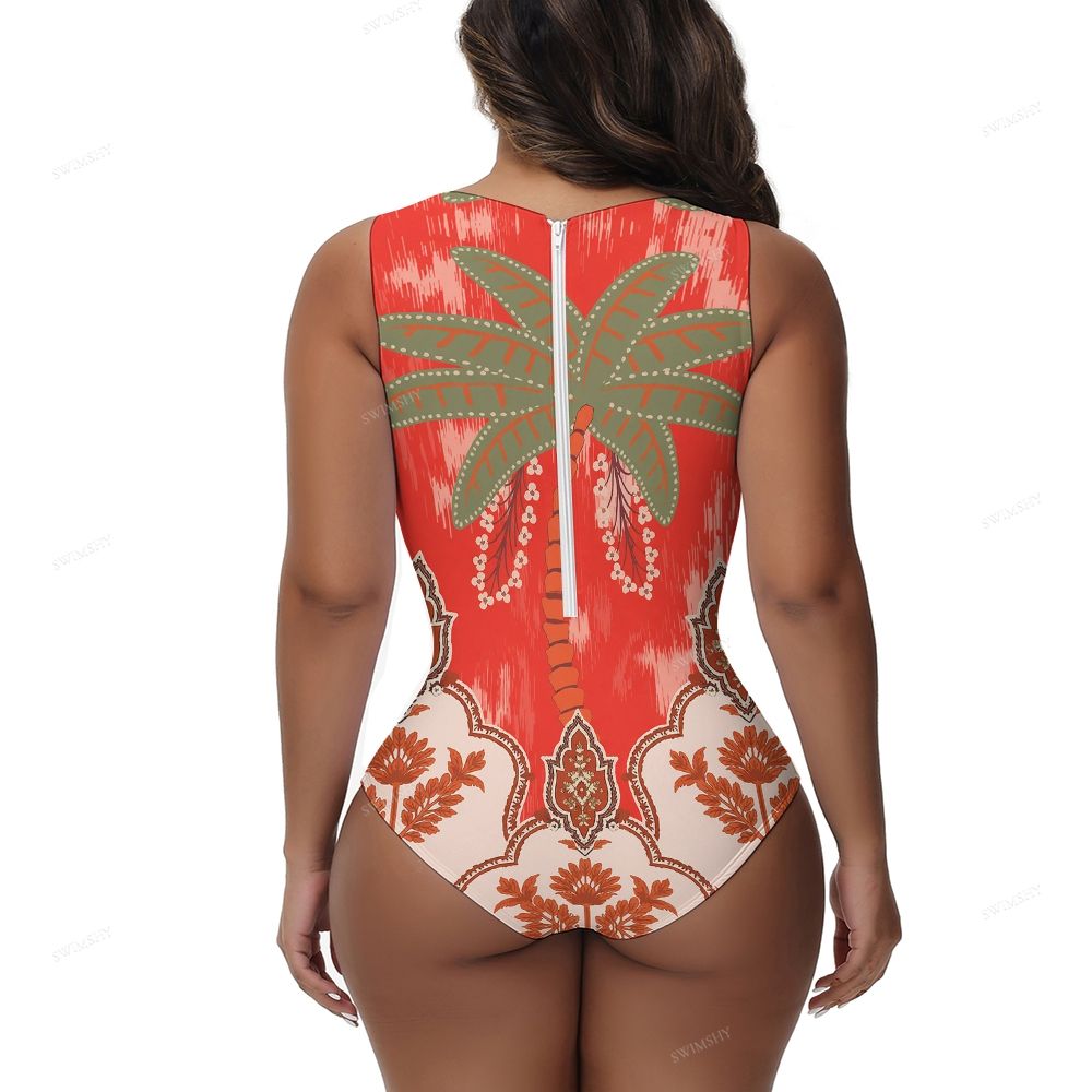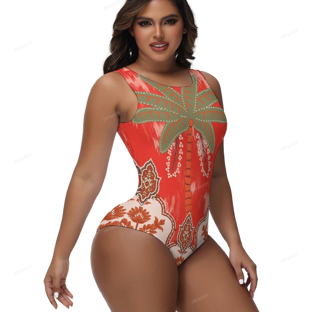 Red Palm Print One-Piece Swimsuit