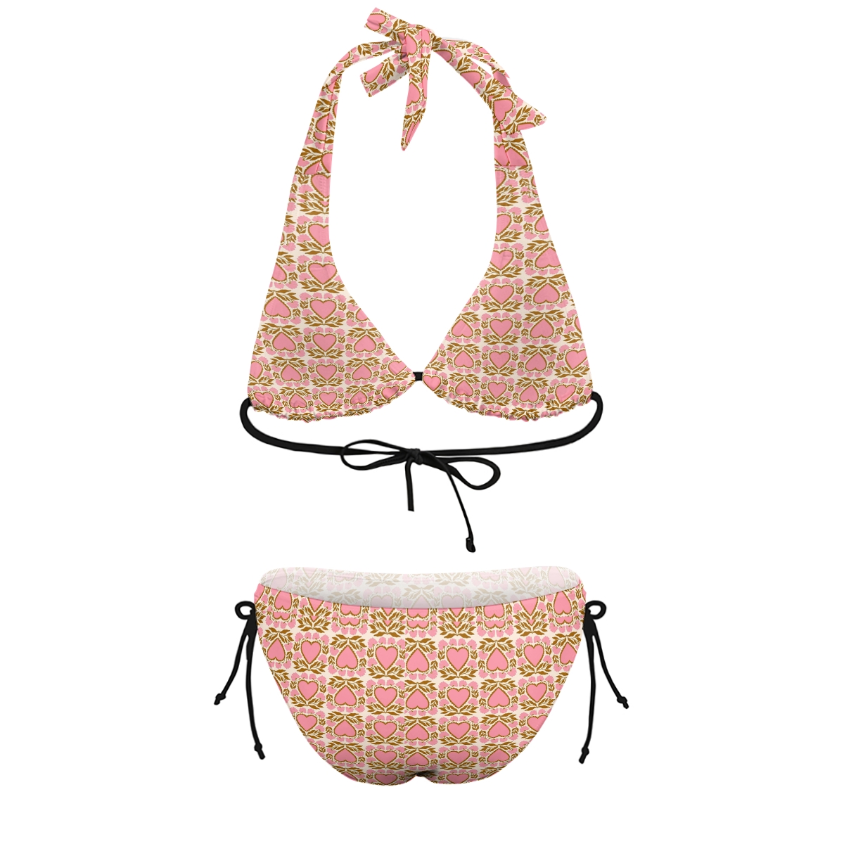 Vintage Heart Botanical Pattern Halter Triangle Top Bikini