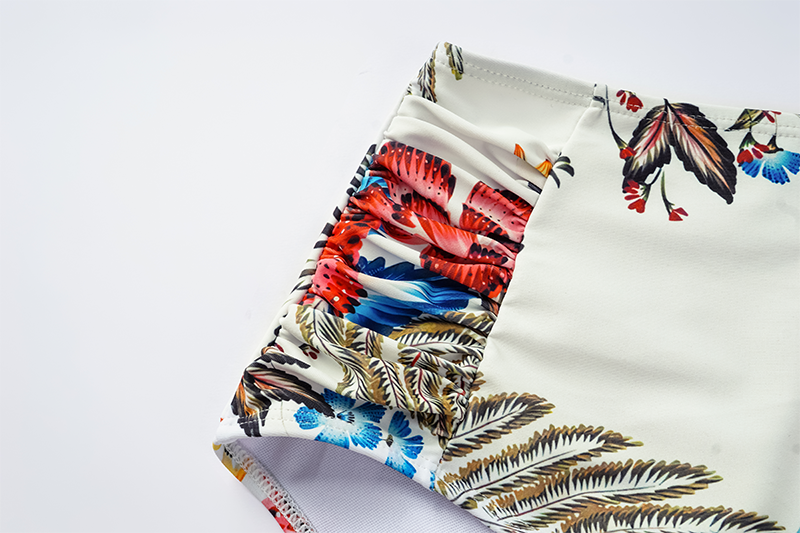 Vintage One-Shoulder Bird Flower Print Ruffled Bikini Set